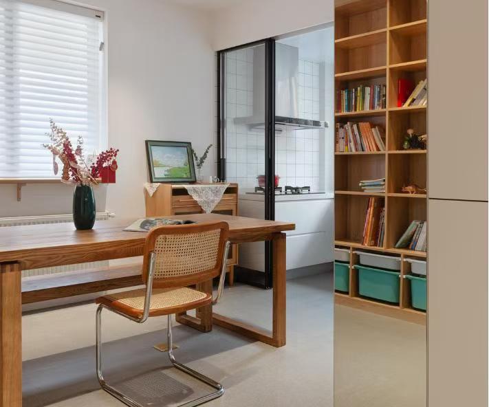 客服1-宏宸裝飾: 她家60㎡,堅(jiān)持不要客廳,卻引來無數(shù)網(wǎng)友點(diǎn)贊,太有遠(yuǎn)見了! 面對小戶型,總會陷入兩難境地,想要的功能太多,但面積又太小。 權(quán)衡之下,想要住得舒適,就不得不舍棄一些功能。如何做取舍,就需要在裝修前按照空間功能的使用頻率來做判斷。本期屋主就做了一個(gè)大膽的決定:傳統(tǒng)的客廳不要了,騰出空間在餐廳增設(shè)書柜和家庭影院。 //戶型分析// ①整屋面積約60㎡,是一套二手老房,原戶型中客餐廳的面積很小,這也激發(fā)了屋主放棄客廳的念頭。②家里只有一個(gè)衛(wèi)生間,一家三口用略顯局促,尤其是在早高峰期。③客餐廳位于只有一扇小窗戶,采光和通風(fēng)性都比較差。 改造前的老房子,空間昏暗、裝修破舊、布局凌亂、收納空間很少,基本上是“一無是處”,需要拆除現(xiàn)有的裝修,全部重新改造。 //設(shè)計(jì)亮點(diǎn)// ①取消客廳,在餐廳規(guī)劃大餐桌、頂天立地的書柜、投影設(shè)備和儲物柜,讓餐廳同時(shí)兼顧了儲物間、書房和家庭影院的功能。②廚房入口安裝玻璃推拉門,以提升餐廳的采光和通風(fēng)性。③兒童房定制榻榻米床,室內(nèi)做大面積的留白,為孩子提供更多的活動(dòng)空間。 裝修改造后,屋內(nèi)采用了極簡風(fēng)裝修,以白色和原木色為基調(diào),氛圍簡約治愈。設(shè)計(jì)師通過無主燈布局,來豐富室內(nèi)的照明層次感,對比裝修前后的亮度效果,至少提升了50%。