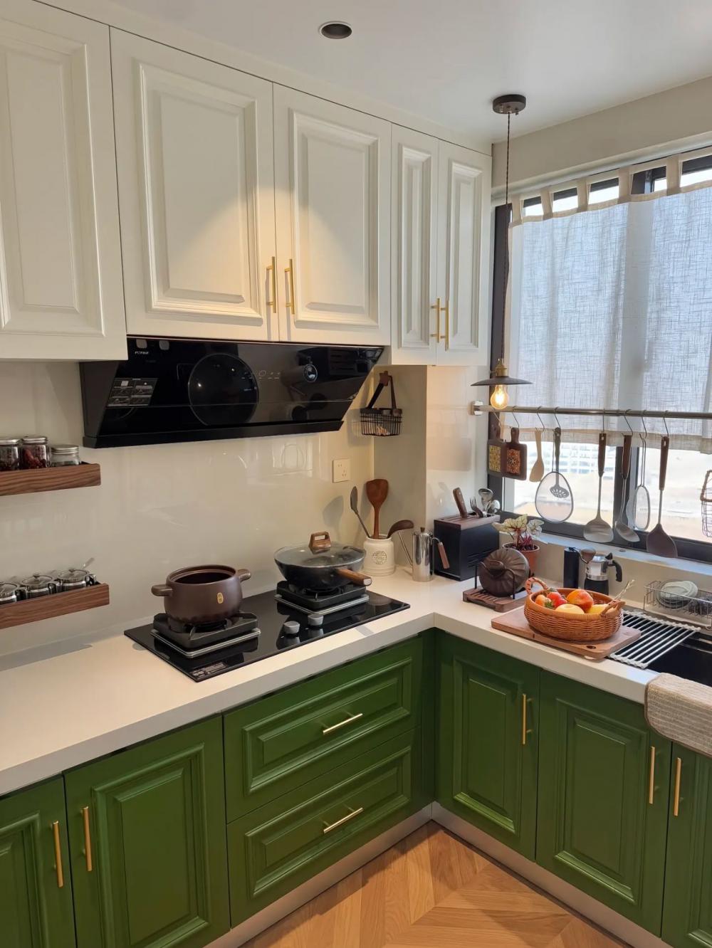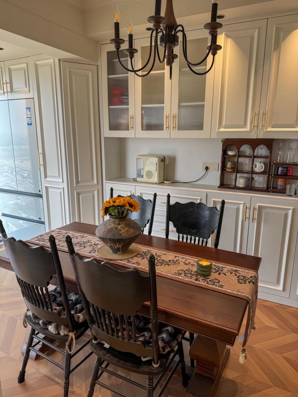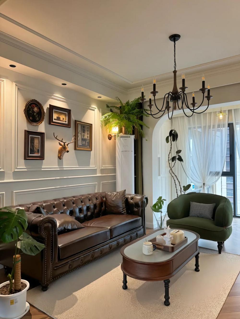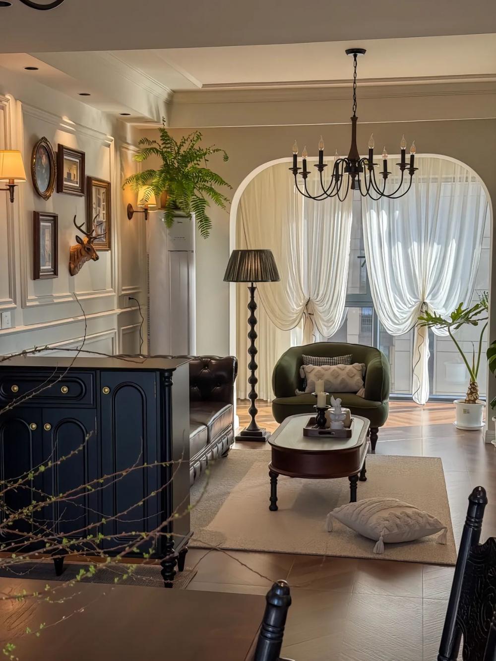 在裝修的萬(wàn)千風(fēng)格中,美式復(fù)古風(fēng)憑借獨(dú)特魅力,成為眾多人心中的白月光。今天,就帶大家走進(jìn)一套 112 平的美式復(fù)古家居,感受它的迷人之處。 ?客廳:復(fù)古韻味的核心場(chǎng)域。 ?客廳通刷杏子灰百分百色漿,通鋪木紋磚。踏入客廳,首先映入眼簾的是暖棕色的木紋磚地面,奠定了空間的復(fù)古基調(diào)。深咖色真皮沙發(fā),搭配配套抱枕,既有質(zhì)感又不失舒適。 ?法式風(fēng)格的背景墻上,6cm線條通過(guò)巧妙組合,營(yíng)造出立體、精致的造型,勾勒出法式獨(dú)有的優(yōu)雅與浪漫。法蒂雅家的復(fù)古風(fēng)景畫(huà)懸掛其上,它們以獨(dú)特的視角和細(xì)膩的筆觸,把舊時(shí)光的動(dòng)人故事封存進(jìn)畫(huà)框,每一處細(xì)節(jié)都散發(fā)著耐人尋味的藝術(shù)魅力。 ?在空調(diào)上方這個(gè)獨(dú)特角落,綠植霸王蕨憑借自身獨(dú)特的形態(tài)與蓬勃的生機(jī),打破空間的沉悶感。達(dá)里奧綠色單人沙發(fā)憑借鮮明色彩與獨(dú)特造型,迅速成為視覺(jué)焦點(diǎn),旁邊落地?zé)敉鹑缫晃粌?yōu)雅的侍者,暖黃燈光傾灑,與沙發(fā)共同打造舒適的一隅。 ??餐廳:復(fù)古與實(shí)用的融合。 ?餐廳區(qū)域,和日尚家的木質(zhì)餐桌搭配餐椅,簡(jiǎn)約而大氣;白色餐邊柜搭配金屬把手格調(diào)滿(mǎn)滿(mǎn)。 ?廚房區(qū)域:白色吊柜輕盈干凈,綠色地柜生機(jī)滿(mǎn)滿(mǎn),配上金屬把手與木制小配件,冷暖相宜,營(yíng)造質(zhì)感空間 ,溫馨又治愈 。 ?美式復(fù)古風(fēng)廁所,以花紋瓷磚鋪就墻面,搭配木質(zhì)洗手臺(tái)、黃銅色水龍頭,再掛上古舊風(fēng)格的鏡子,滿(mǎn)溢著隨性、優(yōu)雅與懷舊氣息。 ?臥室:靜謐的復(fù)古夢(mèng)鄉(xiāng)。 ?臥室以柔和的色調(diào)為主,一張巢趣的全實(shí)木美式輕奢床,搭配真絲床品,讓人一躺上去就仿佛陷入溫柔鄉(xiāng)。 ?112 平的美式復(fù)古家居,不是簡(jiǎn)單的元素堆砌,而是對(duì)生活美學(xué)的深度詮釋?zhuān)屆恳粋€(gè)熱愛(ài)生活的人,都能在這里找到屬于自己的溫暖角落。
