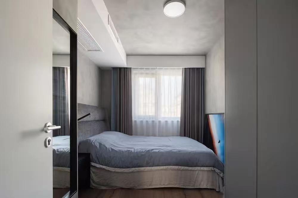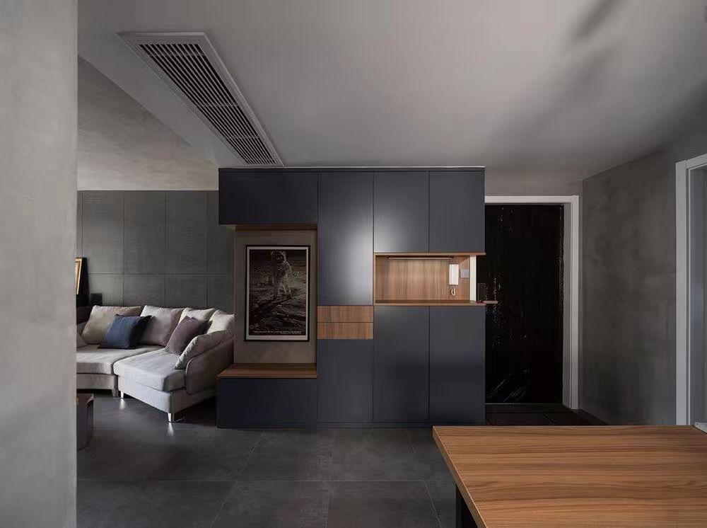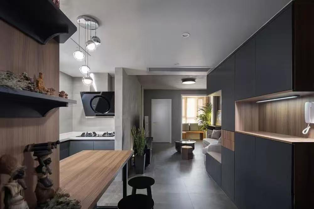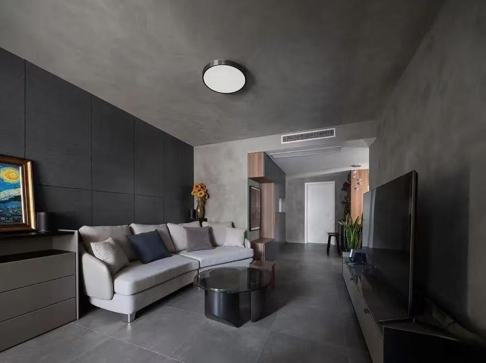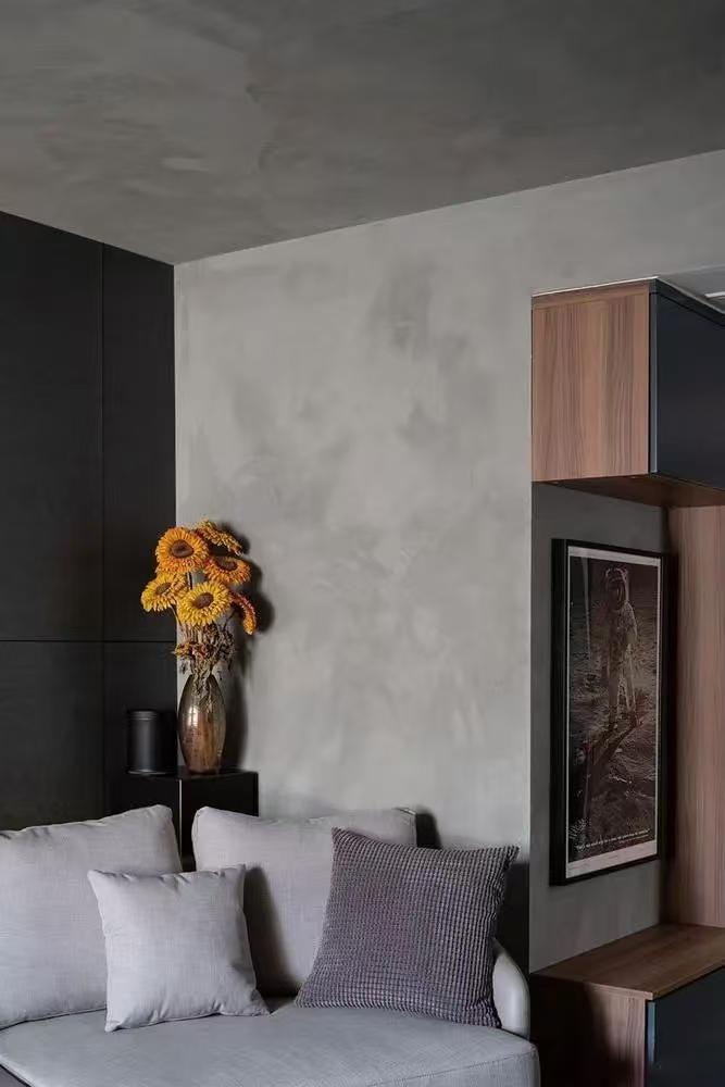 本案是一個面積60㎡??蛻舴课葑约阂粋€人住,偶爾招待朋友,業(yè)主很喜歡工業(yè)風的設(shè)計,同時希望融入自己多年收藏的工藝品,對裝修效果關(guān)注度最高的是客廳,其次是廚房和衛(wèi)生間,尤其是位于客廳沙發(fā)處時向各方向的觀感,在保證基本功能和質(zhì)量情況下,盡可能優(yōu)先考慮美觀和整體效果。 原本戶型客餐廳空間利用不合理,設(shè)計師改動廚房結(jié)構(gòu),設(shè)計成開放式廚房,融合餐廳與玄關(guān)區(qū)域,衛(wèi)生間設(shè)計隱形門,增加空間的整體效果。 沙發(fā)背景選用深色調(diào)水泥板,拉開空間層次。墻角的一束向日葵呼應梵高的畫作《星空》 門廳柜設(shè)計以藍灰色為主,通過胡桃木設(shè)計階梯狀跳色處理,增加空間感,同時增加活潑感。 陽臺與客廳打通,是整個設(shè)計最靜謐的空間,禪意的垂簾中透出自然光的變幻,可以在這里愜意的小酌一杯。 陽光透過窗欞灑進來,綠植和梵高畫作,無一不描繪著對親近自然,閑適生活的追求。 推開入戶房門,映入眼簾的是玄關(guān)裝飾柜結(jié)合餐廳的設(shè)計,玄關(guān)柜上的擺件是客戶在各地收藏的藝術(shù)品。跳動的餐廳吊燈增加空間的活力。開放式的廚房設(shè)計提升空間層次感。 全屋采用無踢腳線設(shè)計,把墻與地更自然的融合起來。 臥室風格與整體格調(diào)保持一致,通過鏡面反射擴大臥室的空間感,床頭臺燈的一束柔光溫暖水泥質(zhì)感的空間。 衛(wèi)浴間整體呈現(xiàn)個性、時尚的空間氛圍?;疑荡u體墻體一體的設(shè)計,空間更顯寬敞。原木色及綠植的運用提亮了空間的色彩。 衛(wèi)浴間的隱形門設(shè)計給空間增添一絲玄機,通過藝術(shù)漆面處理與整體墻面融為一體。 書房的空間使用的比較多,所以把采光好的一個臥室設(shè)計成書房空間。