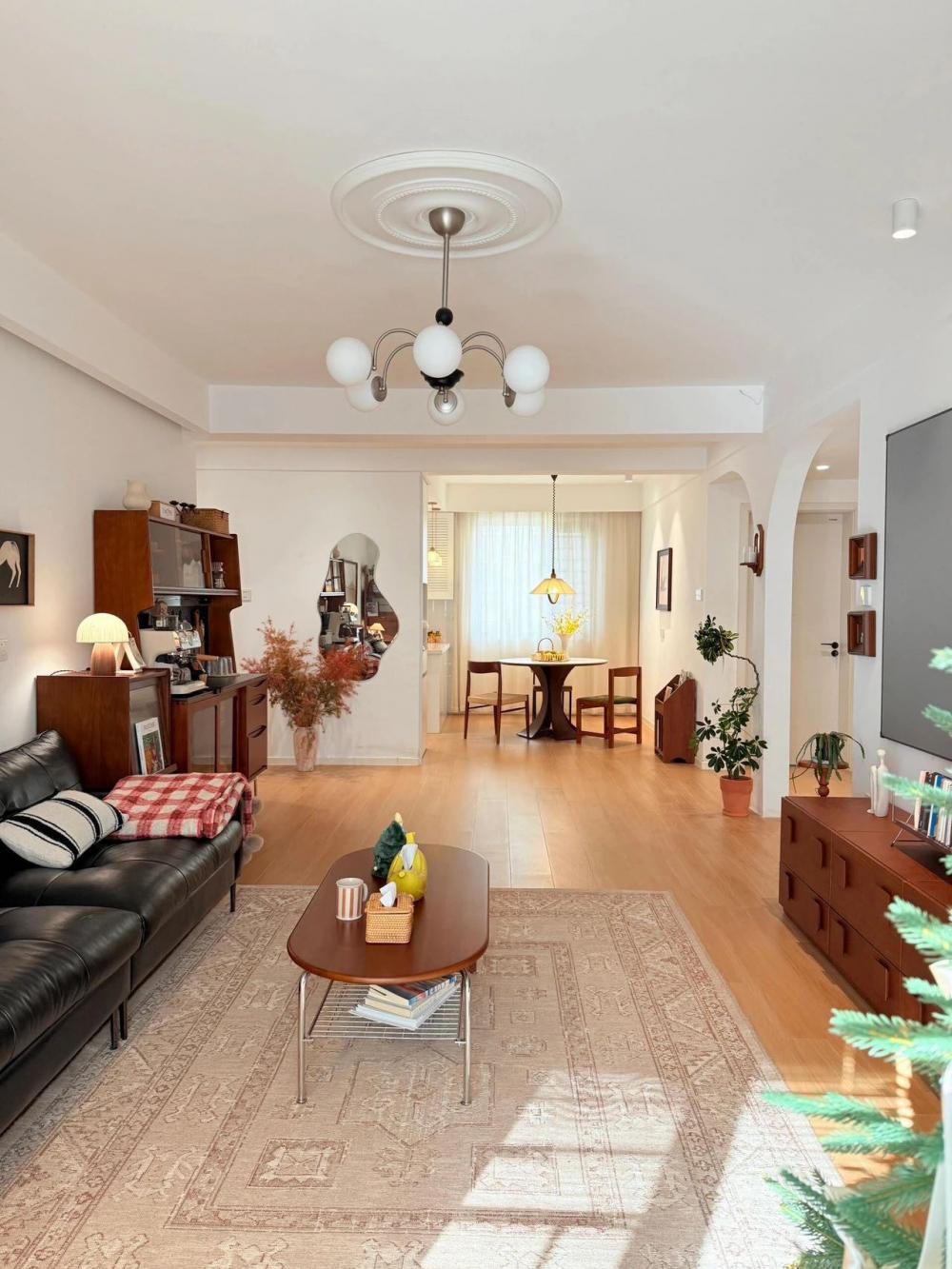 刷到這對(duì)夫妻的裝修我真的又好哭又好笑! 結(jié)婚5年租房4年,33歲才住進(jìn)自己家 像極了每個(gè)在北上廣漂著的倔強(qiáng)靈魂 但看完他們的裝修…家人們誰懂??!?? 【最爭(zhēng)議操作】?? "層高2.68不吊頂?" 多少人裝修公司說層高低必須吊頂顯高 結(jié)果人家直接大白墻+單眼皮石膏線 配上木紋磚反而更顯通透! (建議:層高<2.7m的真心別做復(fù)雜吊頂) 【魔鬼在細(xì)節(jié)】?? 黑色沙發(fā)配奶油風(fēng)真是藝高人膽大! 但配上木色家具瞬間拿捏住中古氣質(zhì) (劃重點(diǎn):淺色空間至少要20%深色壓場(chǎng)) 最想吐槽這個(gè)圓桌!?? 說好的中古風(fēng)怎么混進(jìn)北歐元素了? 但不得不承認(rèn)確實(shí)比直角餐桌更適合小戶型 (小戶型選家具記?。呵€>棱角) 【過來人建議】?? 1?木紋磚通鋪記得選啞光美縫劑 2?單眼皮石膏線離頂留出15cm更顯層高 3?黑色家具要用木色/藤編元素過渡才不會(huì)突兀 所以問題來了:到底該不該為了省錢犧牲吊頂?