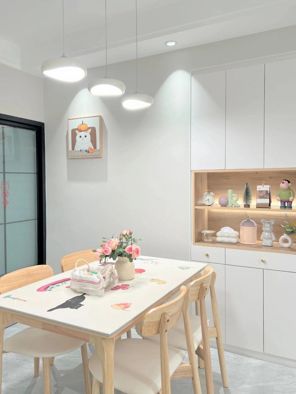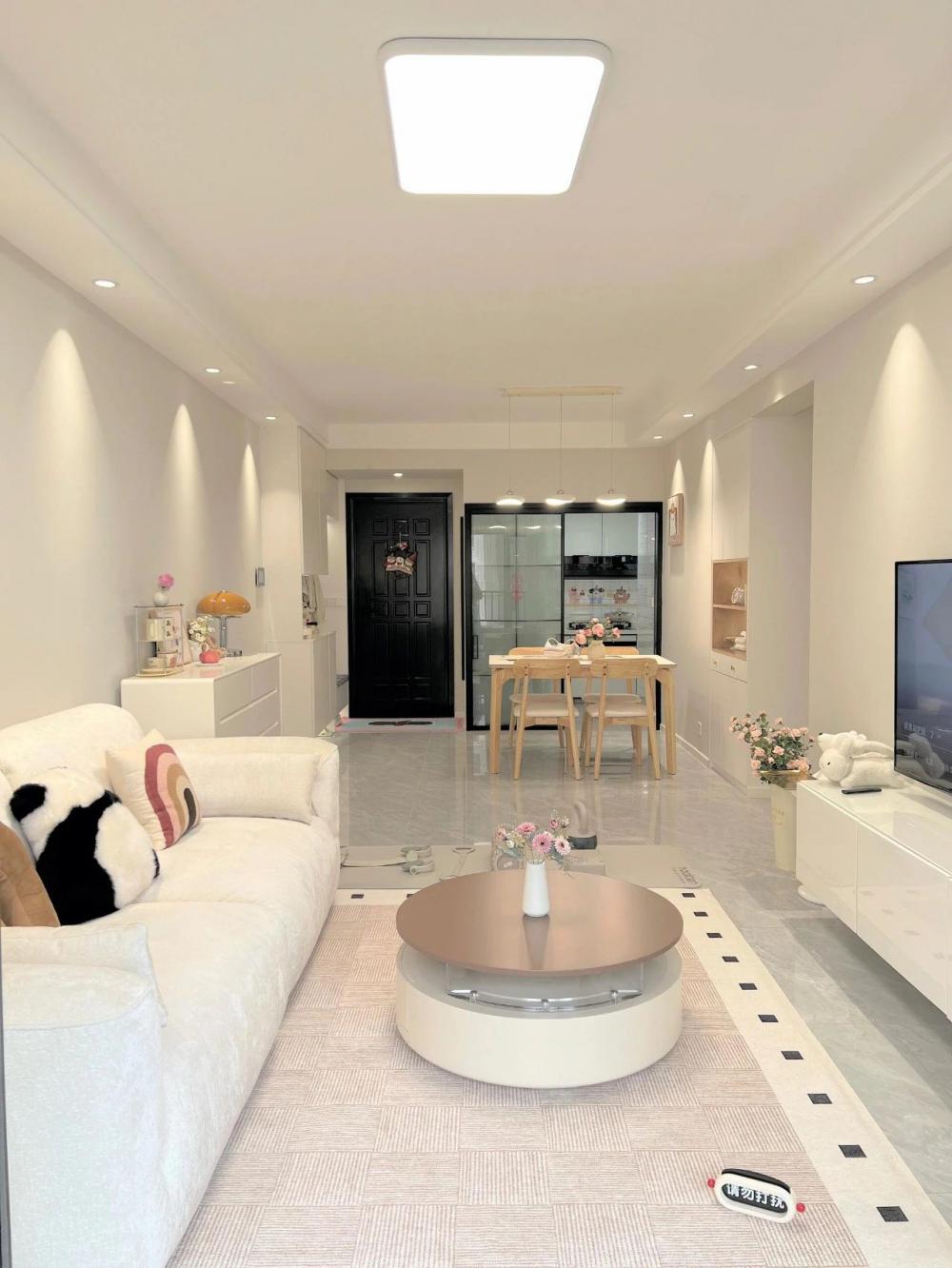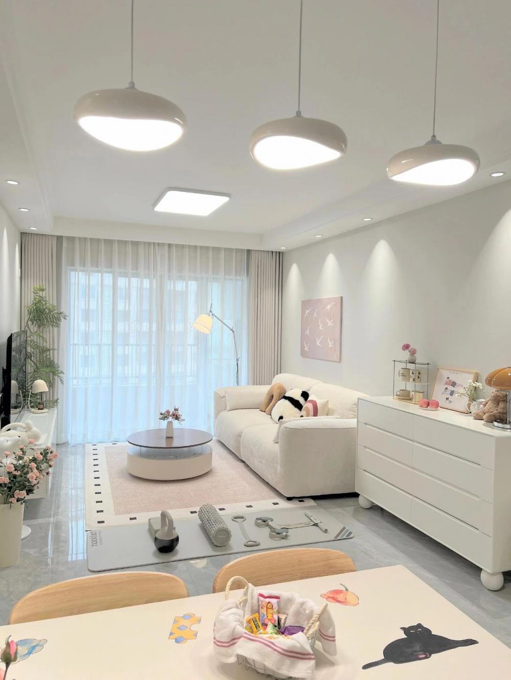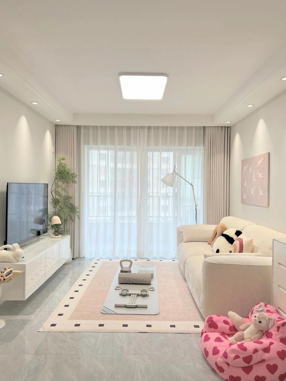 裝修時(shí)預(yù)算有限,秉著能省則省的原則,沒(méi)想到裝好以后盆友來(lái)了都說(shuō)~裝成這樣已經(jīng)很哇塞啦!?? - ??建面95平,套內(nèi) 75平 ?客餐廳一體的三室小戶(hù)型 ?風(fēng)格算是簡(jiǎn)約奶油風(fēng) - ??關(guān)于裝修思路?? 硬裝越簡(jiǎn)單,軟裝越好搭 1、客餐廳一體瓷磚通鋪通透又顯大 2、屋頂走一圈雙眼皮吊頂 3、全屋淺色墻通比大白墻顯溫馨 4、沒(méi)做任何復(fù)雜背景墻 5、小戶(hù)型就多做了收納柜來(lái)收納 軟裝則以奶油色系為主,奶油色的窗簾、地毯、??和茶幾,餐廳也選了奶呼呼的云?團(tuán)吊燈,再用一些擺件、裝飾畫(huà)和綠植點(diǎn)綴,一個(gè)溫馨舒適的小家就出現(xiàn)啦! 閑暇時(shí)光在家鋪上瑜伽墊,做做瑜伽??跳跳操太舒服愜意啦!