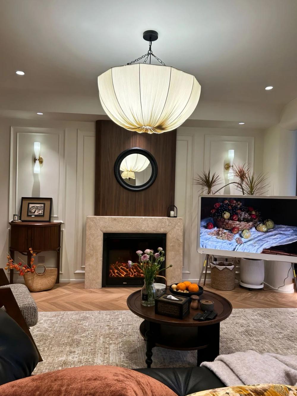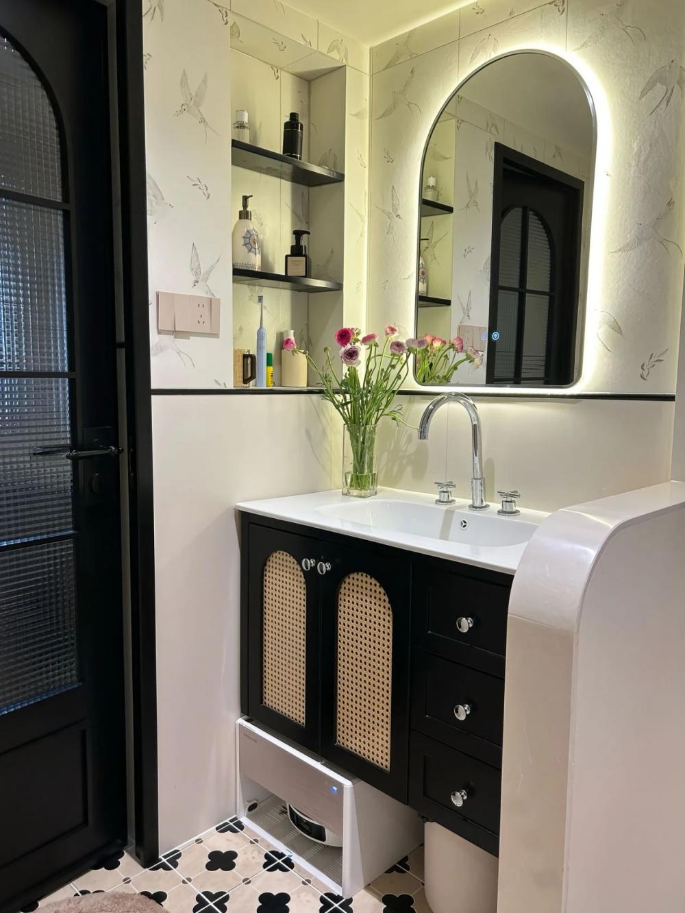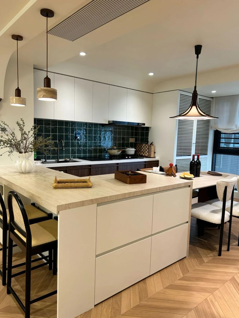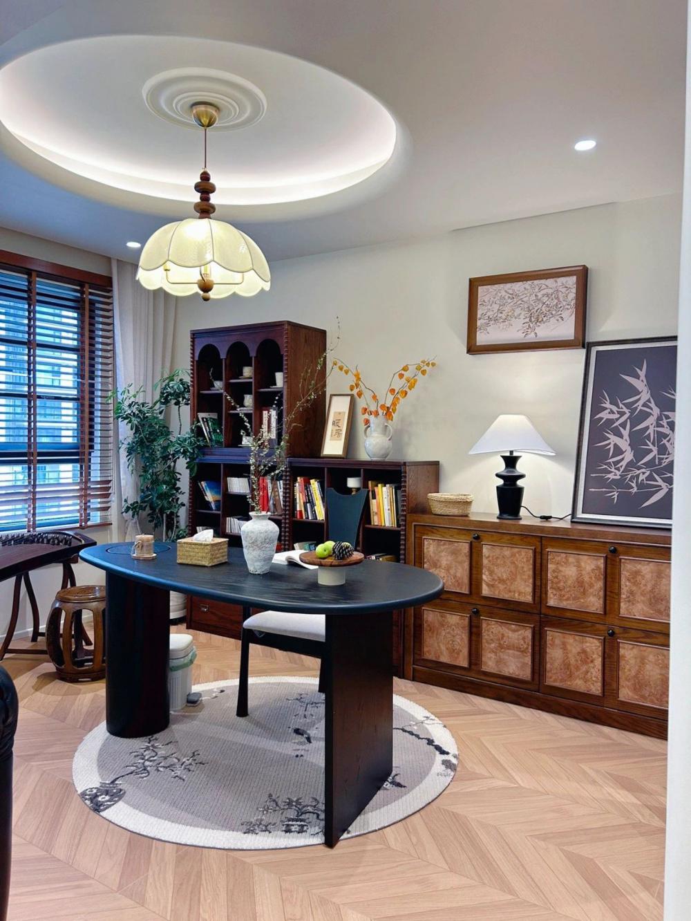 ?在這處建筑面積128平,套內107平的空間里,一場別出心裁的改造悄然上演。原本的四房格局被巧妙改成三房,打造出半開放式書房,為空間注入靈動與自由。 ?全開放式廚房與餐廳、客廳融會貫通,4.2米的開闊開間,賦予了小家大平層般的氣場。踏入家門,溫暖而富有質感的氛圍撲面而來。 ?全屋通鋪60×120淺胡桃色人字拼木紋磚,在提升空間質感的同時,也為家增添了幾分復古韻味。墻面通刷乳膠漆,并輔以精致的石膏線,法式浪漫呼之欲出。復古主燈、壁燈、落地燈相互呼應,巧妙營造出富有層次感的光影。拱形門搭配超白玻璃,不僅提升了空間的通透感,更帶來了一絲夢幻色彩。 ?客廳一側,電子壁爐散發(fā)著溫暖的氣息,復古半圓手風琴柜與55寸移動電視和諧共處。另一側,儒黛家的黑色沙發(fā)成為視覺焦點,展現(xiàn)出獨特的品味。 ?陽臺抬高10公分打造出一方木質地臺,地臺上,是一張簡約的茶桌,桌上精致的茶具擺放整齊。復古茶壺通過頂部特制的固定裝置被穩(wěn)穩(wěn)地懸空吊起,為整個空間增添了一份獨特的藝術感。當陽光透過窗戶灑在陽臺上,光影在茶具上跳躍,營造出寧靜而美好的氛圍。 ?開放式廚房中,木板定制的島臺柜體搭配巖板臺面,實用又美觀。骨骼線設計的柜子,為廚房營造出拉滿的氛圍感。石膏板吊頂涂刷了防水防油防霉乳膠漆,實用又美觀。 ?這個打造的家,巧妙融合了5分法式復古、3分中古、1分度假、1分侘寂風格。每一個角落,都散發(fā)著溫馨的氣息,讓人在回家的瞬間,就能感受到滿滿的幸福。