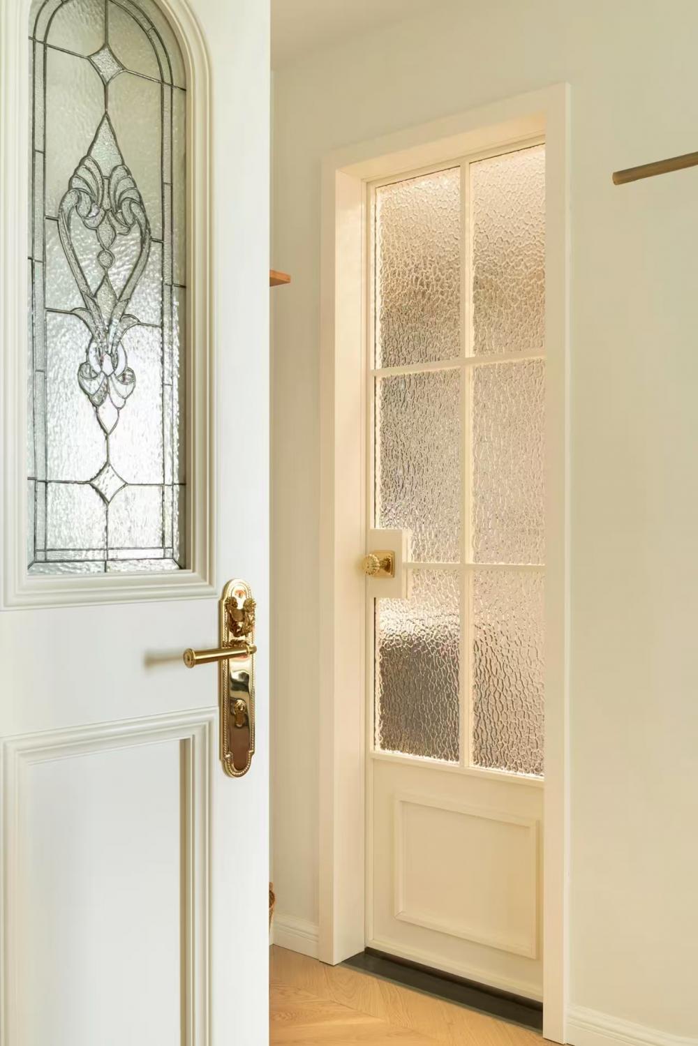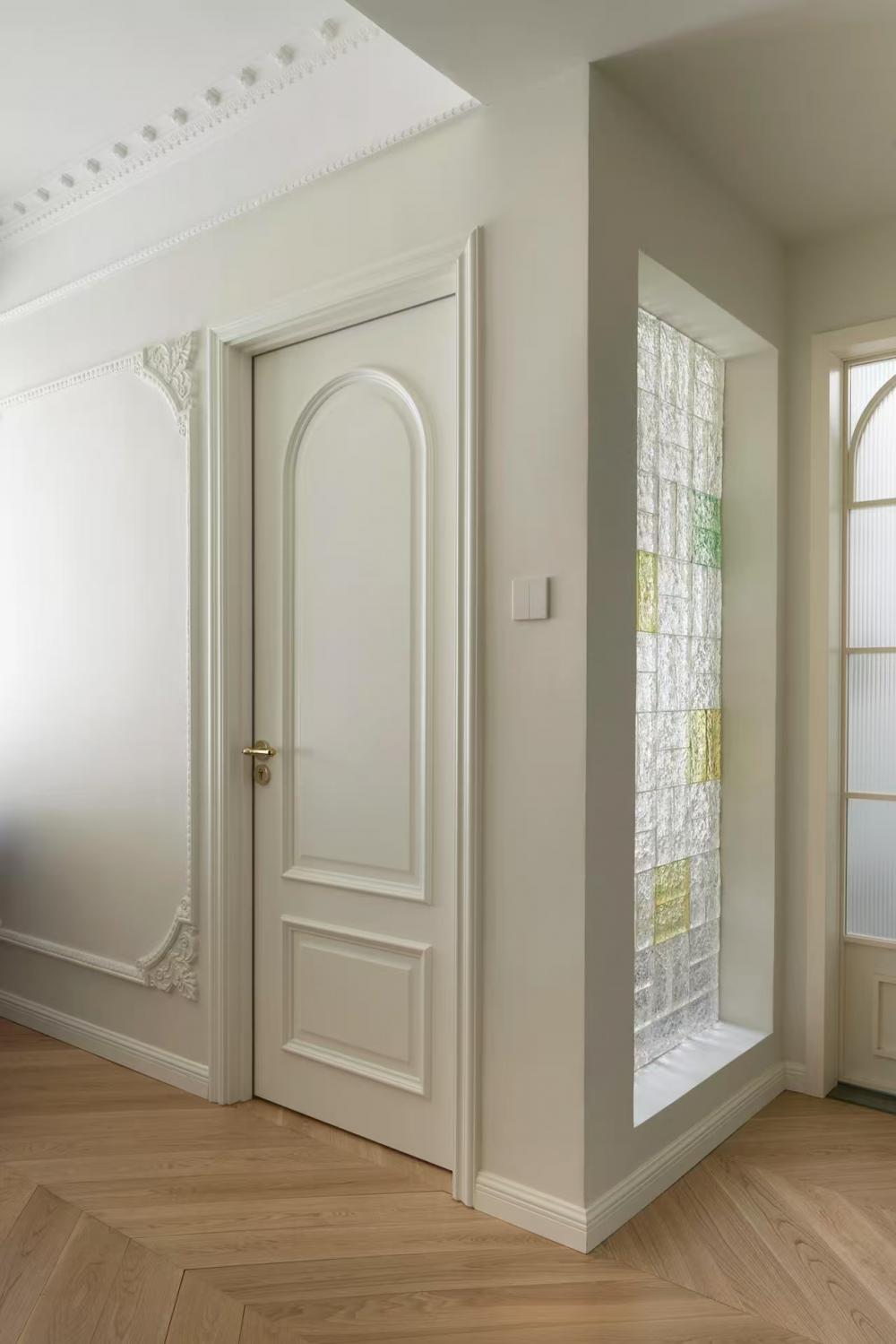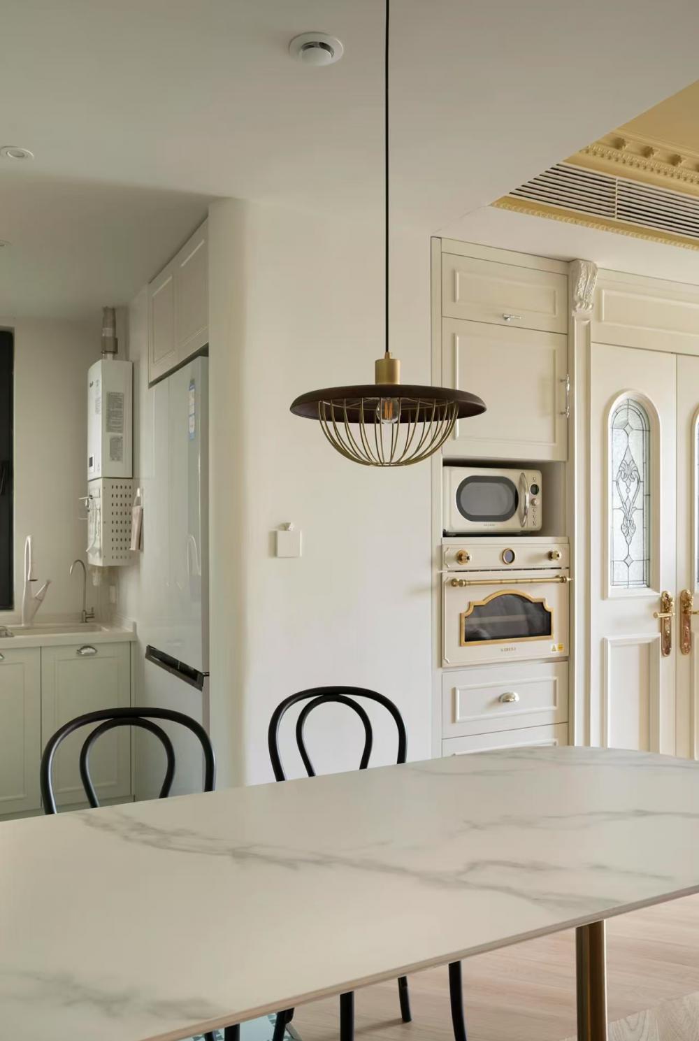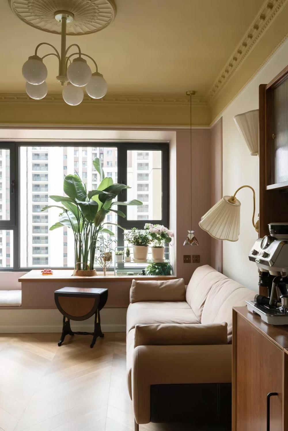 本次改造以局部拆墻重塑為核心,巧妙規(guī)劃空間布局,強化功能坪效,改善采光問題。在有限改動前提下,成功將套內(nèi)面積僅66m2小三居化為充滿法式陽光的大居室,既滿足業(yè)主當(dāng)前需求,又預(yù)留未來變化空間,實現(xiàn)美觀、實用與靈活三位一體的居住體驗。 設(shè)計師結(jié)合業(yè)主的居住訴求,將空間布局的改動聚焦在了 以下3點:1、利用多功能組合柜,規(guī)整門廳,提升坪效;2 、 打開廚房,客餐廚合并;3 、閑置小臥室改多功能房。 打開家門,一抹清新法式風(fēng)迎面而來。原本局促的門廳經(jīng)多功能組合柜“魔盒”整理,瞬間變得井然有序。 鞋柜、家政柜、洗手臺一應(yīng)俱全,空間利用率大幅提升,讓入戶區(qū)域既美觀又實用。 柜內(nèi)預(yù)留電源,利用洗手池的上下水嵌入掃地機器人,將家政柜也規(guī)劃在了這個區(qū)域。將掃地機器人的出口放在了側(cè)邊,這樣能保證正對入戶大門的一側(cè)能夠規(guī)整、美觀。 這個房間目前主要作為儲物空間和瑜伽室使用,衣柜內(nèi)部規(guī)劃了運動器械收納區(qū),窗邊放置了辦公桌。 隔壁就是次臥,緊鄰客衛(wèi)。更改次臥入口,從多功能房一側(cè)進入,原門洞用玻璃磚封起來,一來可以為客衛(wèi)干區(qū)引光,二來能保持空間的靈活性。 步入客廳,法式浪漫氣息撲面而來。芥末黃與灰粉色的完美搭配,賦予空間溫馨而不失活力的氣息。 拆墻重塑,餐廚合一,空間瞬間放大。廚房由封閉走向開放,島臺與大餐桌無縫對接,形成高效便捷的餐廚交互空間。餐邊柜的加入,不僅提升收納能力,更為咖啡愛好者打造專屬舞臺,讓用餐時光更具儀式感。 廚房是在原簡裝瓷磚的基礎(chǔ)上直接貼琺瑯版上墻,省去了找平的步驟。另一側(cè)嵌入冰箱,冰箱側(cè)邊新增的烤箱電器柜??鞠涮匾膺x了與墻同色的奶白色,復(fù)古的樣式也能很好的融入公區(qū)環(huán)境。 雙開門設(shè)計營造法式特有的儀式感,彩繪玻璃元素增添浪漫情調(diào)。衣柜側(cè)邊的復(fù)古黃銅壁燈,成為推門而入的第一視覺焦點,溫暖光源瞬間撫慰疲憊身心。飄窗抽屜加高處理,既增加儲物空間,又提供休閑角落。 主衛(wèi)采用油畫玻璃門引入自然光,馬賽克瓷磚與墻漆拼接,延續(xù)公區(qū)色彩基調(diào),兼顧隱私與美觀。衛(wèi)浴間內(nèi),馬賽克瓷磚拼接墻漆,在色彩上與公區(qū)相呼應(yīng)。 次臥作為未來的兒童房,整體布局簡單,盡可能的保留了空間的靈活度,方便業(yè)主后期根據(jù)需求自由發(fā)揮。