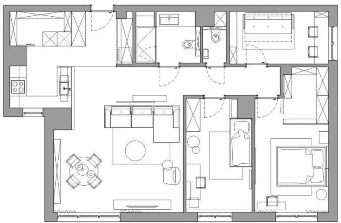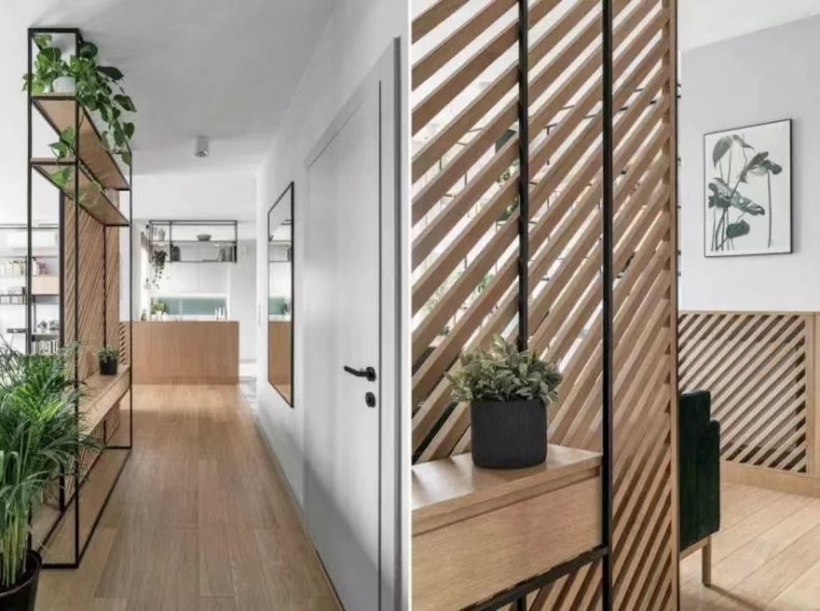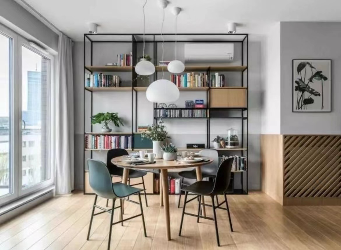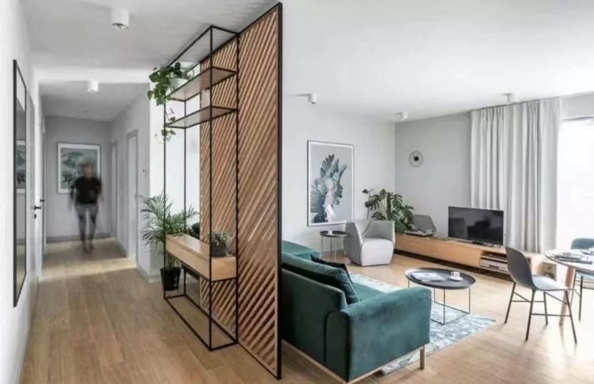 這款戶型較大,但是它利用木格柵的方式進(jìn)行隔斷,小戶型的參考價值也很大。整個空間光照異常好,通透大氣又不失清新簡約。