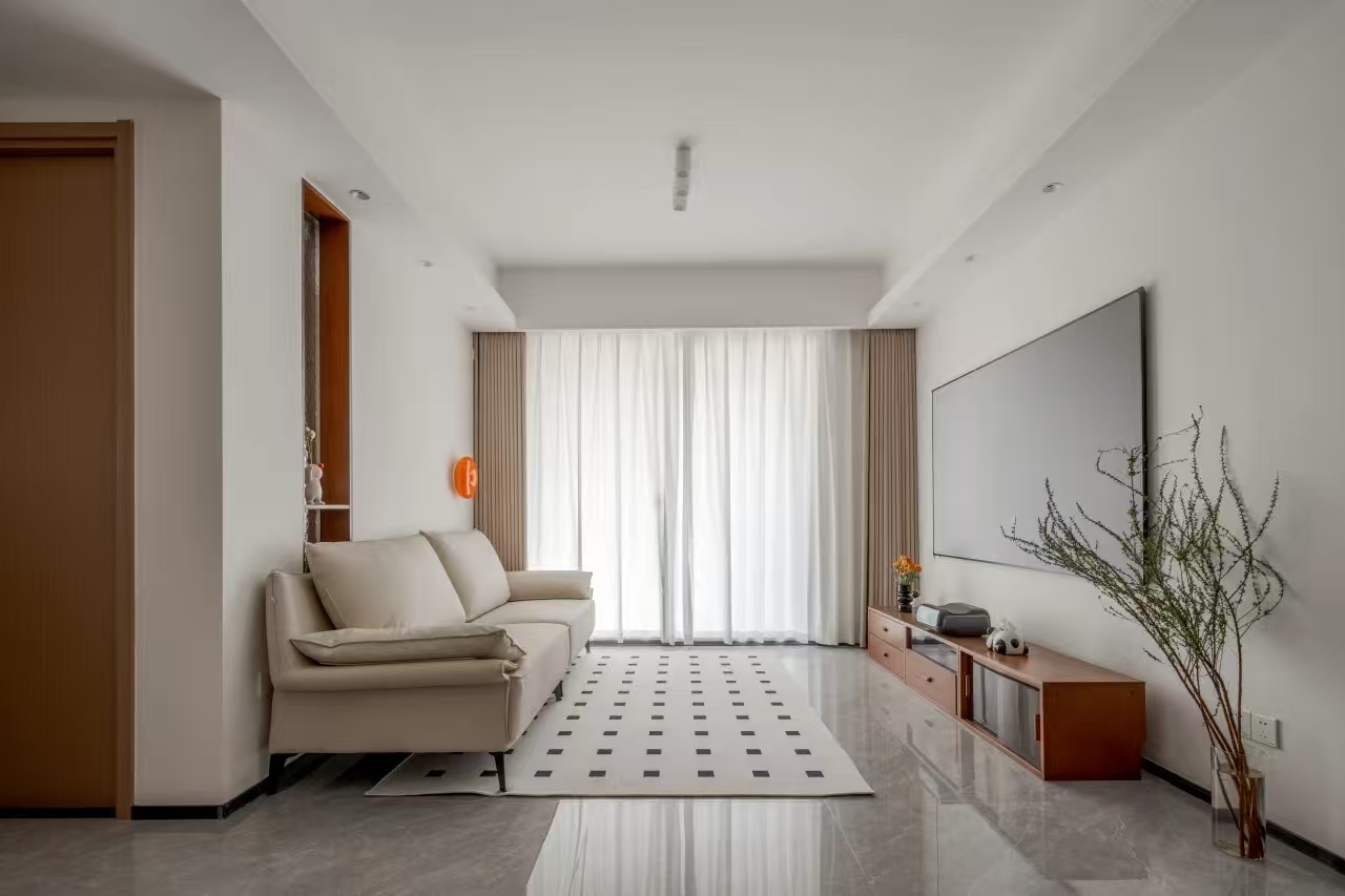 入戶鞋柜原門板更換為胡桃木色后與全屋風(fēng)格融合,提升美觀度。鞋柜中間鏤空區(qū)域放置裝飾品托盤等,回家可以隨手放置鑰匙手表等飾品。 改造后餐廚間的隔墻被打開,采用黑色玻璃推拉門,保持了空間的通透性。餐廳中央,圓形餐桌擺放在中央,中古藤椅橙白交替,為整個(gè)空間增添了一抹活潑的色彩。 廚房以白色和灰色為主色調(diào),原本L型的櫥柜被巧妙地?cái)U(kuò)展為U型,極大地增加了操作臺面和儲物空間。在廚房的一側(cè),微波爐、烤箱,都在安置在合理的區(qū)域,為烹飪提供了更多便捷性。 沙發(fā)背后,鏤空的玻璃隔斷成為視覺的焦點(diǎn)。水波紋的紋理讓玻璃后的景觀被賦予了油畫般的質(zhì)感,光線的穿插使得整個(gè)空間更加明亮通透,趣味十足。 客餐廳并未選擇傳統(tǒng)的滿墻定制柜,而是采用了模塊組合型書柜作為電視柜。這樣不僅滿足了收納需求,更賦予了空間更多的靈活性,電視柜的高度與造型可根據(jù)需求自由調(diào)整。 客廳摒棄常規(guī)的茶幾,可以搭配靈活移動(dòng)的小推車。這樣就讓空間更加開闊 主臥飄窗區(qū)域的設(shè)計(jì)很有小心機(jī),鋪上羊羔絨墊子,這里瞬間變成了一個(gè)溫馨的休閑角落。飄窗的抽拉桌面更是發(fā)揮了它的神奇作用。輕輕一拉,一個(gè)超長的大書桌便可滿足所有的工作需求。 次臥的進(jìn)門處,衣柜的側(cè)面設(shè)計(jì)開放式區(qū)域,解決了次凈衣的收納問題,還讓整個(gè)空間顯得更加通透和寬敞。 兒童房利用飄窗的位置,設(shè)計(jì)成了一個(gè)1.35米乘以1.9米的榻榻米,而上鋪則巧妙地避開了飄窗的位置,做成了一個(gè)1.1米乘以2米的床鋪。上下鋪之間1.4米的高度差,打造孩子專屬衣帽間。衣柜內(nèi)可以自由調(diào)整高度的任意撐,適合不同成長階段的孩子使用。