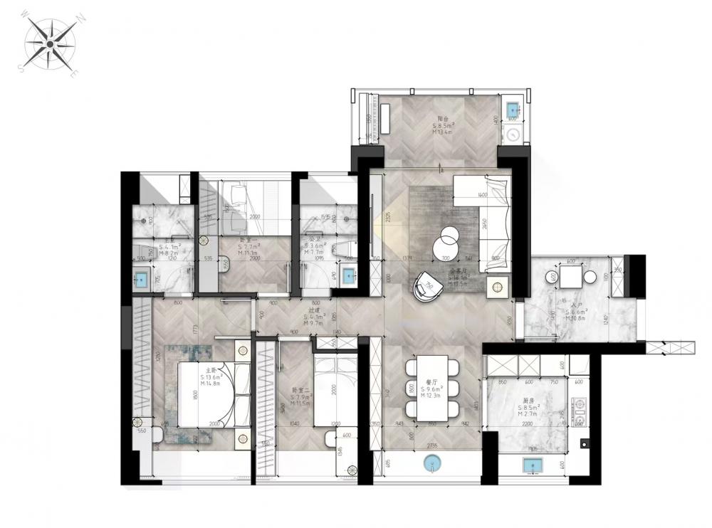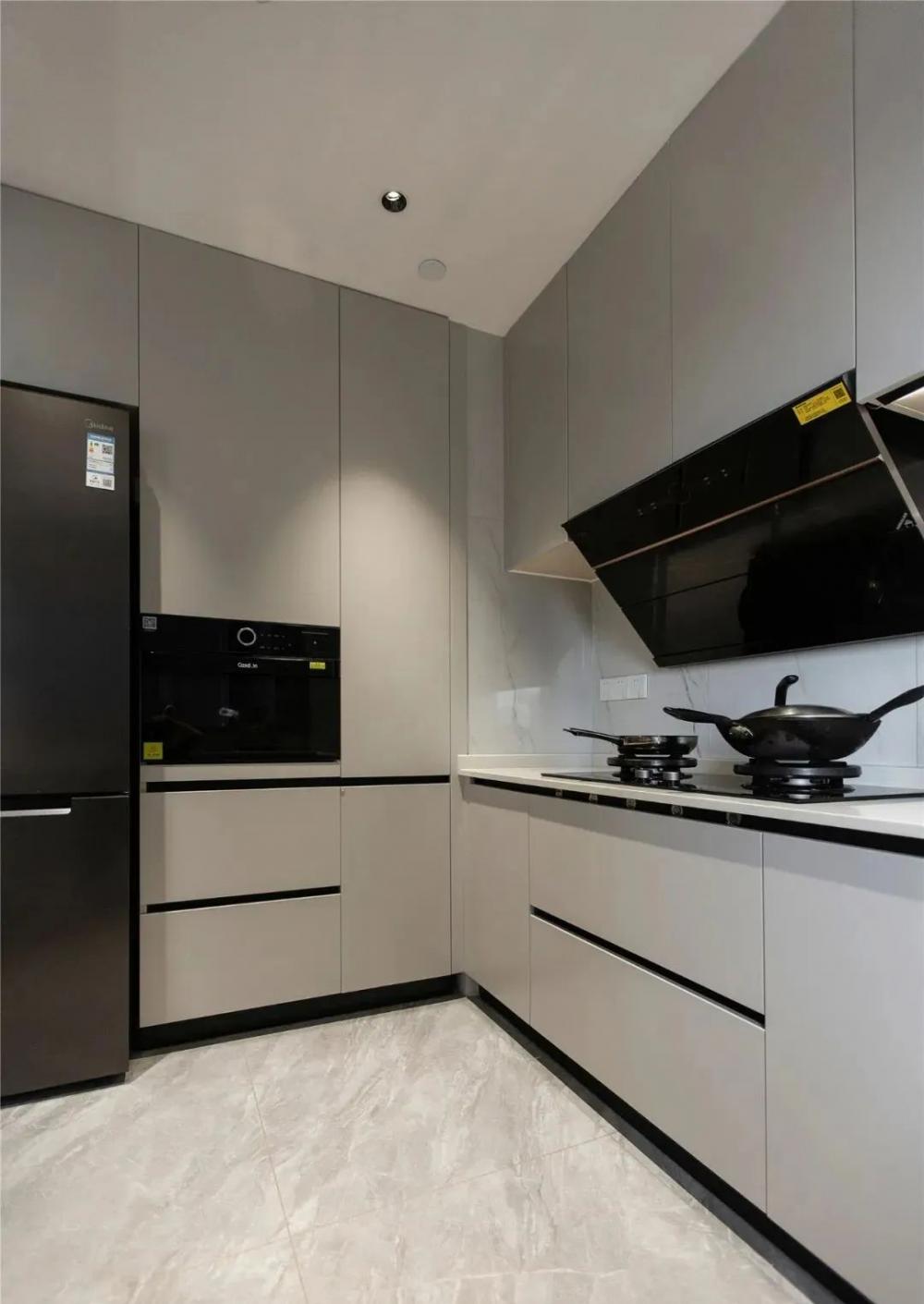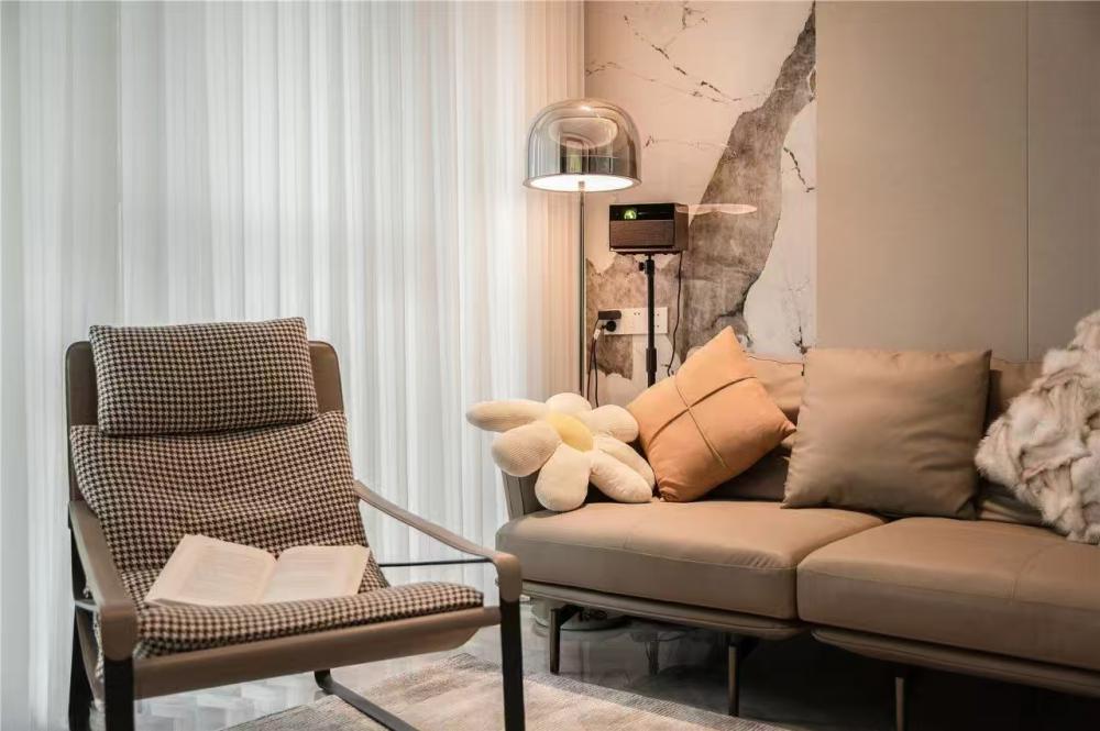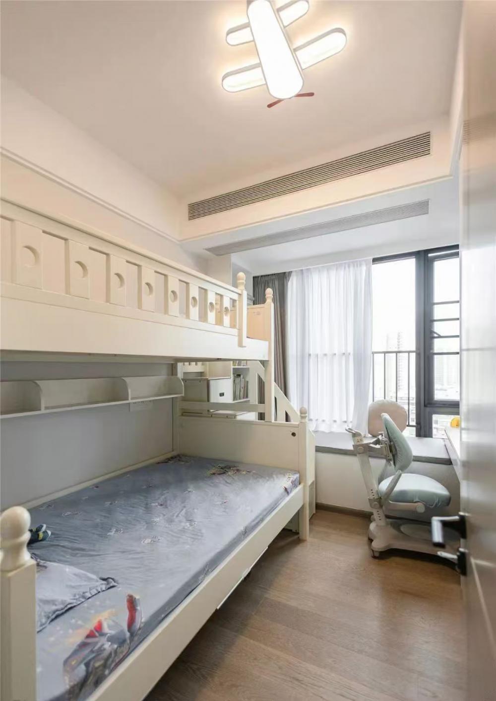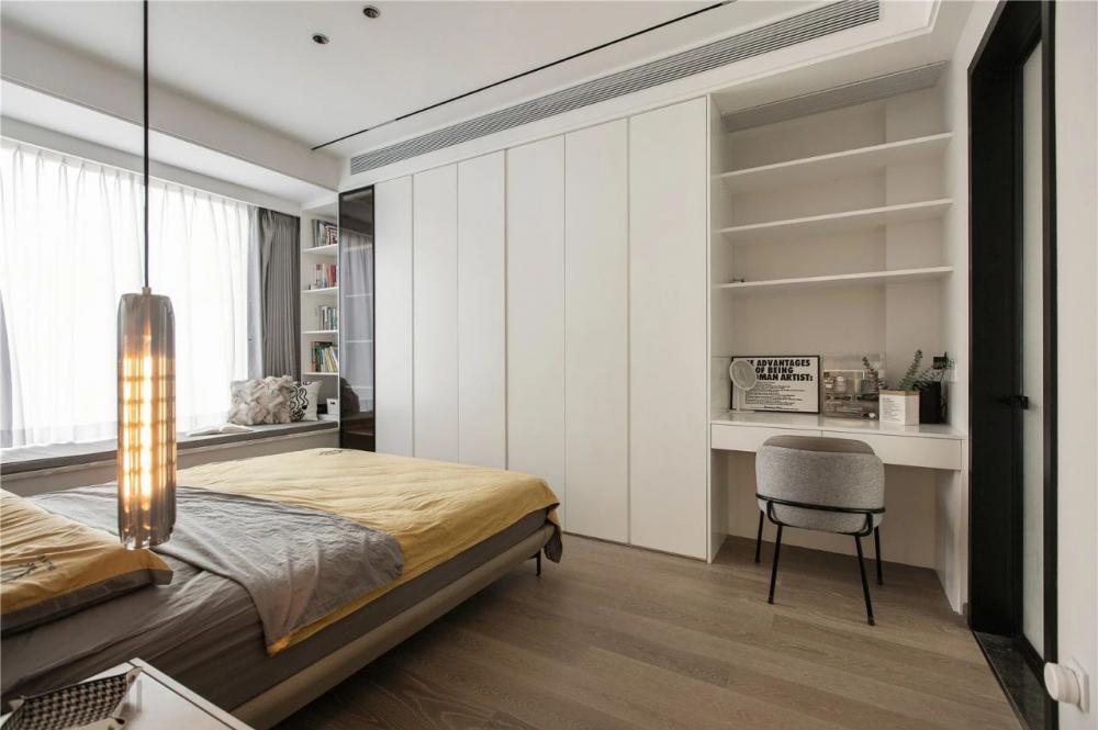 這是一個120m2的三居室。設計圍繞業(yè)主一家人的生活方式及興趣展開,通過調(diào)整空間布局,賦予不同的空間功能,從而實現(xiàn)很好的互動性,創(chuàng)造更多情感的交流的機會。 打開家門后,空間的干凈利落,呈現(xiàn)了一種“百看不膩”的高級感。 不同色值的空間色彩,既簡約又透出著豐富感。 沙發(fā)區(qū)是業(yè)主一家人超愛的區(qū)域,所以電視背景墻結(jié)合了業(yè)主想要的風格,利用連紋大理石,讓大氣的韻味在空中流轉(zhuǎn)。 綠植、沙發(fā)、抱枕、地毯、落地燈,相近的色彩與材質(zhì)之間和諧共處著,同時散發(fā)著一種循序漸進的層次感。 純?nèi)黄綄嵉纳{(diào),也是舍繁歸簡的意識。金屬吊燈在柔和的環(huán)境中調(diào)節(jié)著空間的基調(diào),陪伴著一家人的每餐每食。 西廚鄰近餐桌,便于烘焙,為廚房釋放更多空間。黑色木質(zhì)餐桌的做工,質(zhì)感溫潤,干凈純粹,放在采光充足的區(qū)域,食物也變得更加美味。 好看的無柜門餐邊柜,不僅加分,同時也能提升用餐的儀式感。簡約淺色,柜體與臺面更具一體感。 U型的下廚動線,提升了廚房使用的舒適感。 櫥柜幾乎是構成這個廚房的重要功能,增加了很多的儲物面積,內(nèi)嵌冰箱的頂部空間也沒浪費。 主臥延續(xù)著公區(qū)的灰調(diào)與柔和,舒適靜謐的氣韻呈現(xiàn)這個空間的睡臥風格。床頭的金屬吊燈,迎合著空間整體的簡約基調(diào),也起到點綴墻面的作用。兩邊設置床頭柜,實用之余更顯氣質(zhì)溫潤。 內(nèi)嵌的衣柜,沒有過多裝飾的內(nèi)部構造。用細膩的白色材質(zhì)貫穿空間,與業(yè)主的氣質(zhì)十分契合,輕盈又現(xiàn)代。 床頭延伸一張懸空書桌,消減了占比,減少體塊堆積感,也能讓更好的光線進入室內(nèi)。 小孩房注重實用性,收納床的功能,可以滿足孩子3-5年間的成長變化。一側(cè)的墻面定制一排衣柜,至飄窗處延伸一張兒童書桌。 主衛(wèi)和公衛(wèi)的格局極其相似,飄窗的光線從室外射入進來,使得淋浴區(qū)和馬桶區(qū)都能得到很好自然采光和通風。