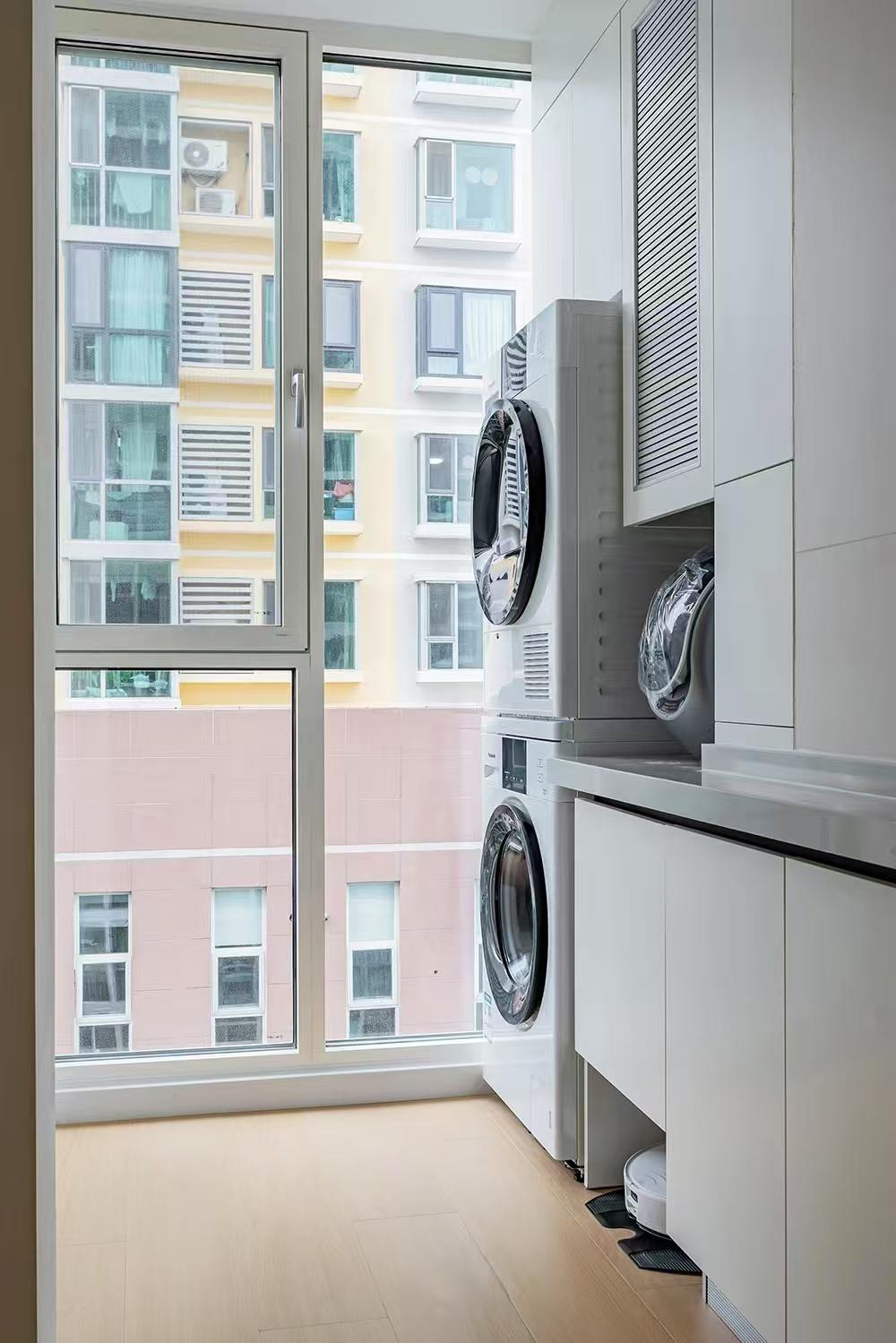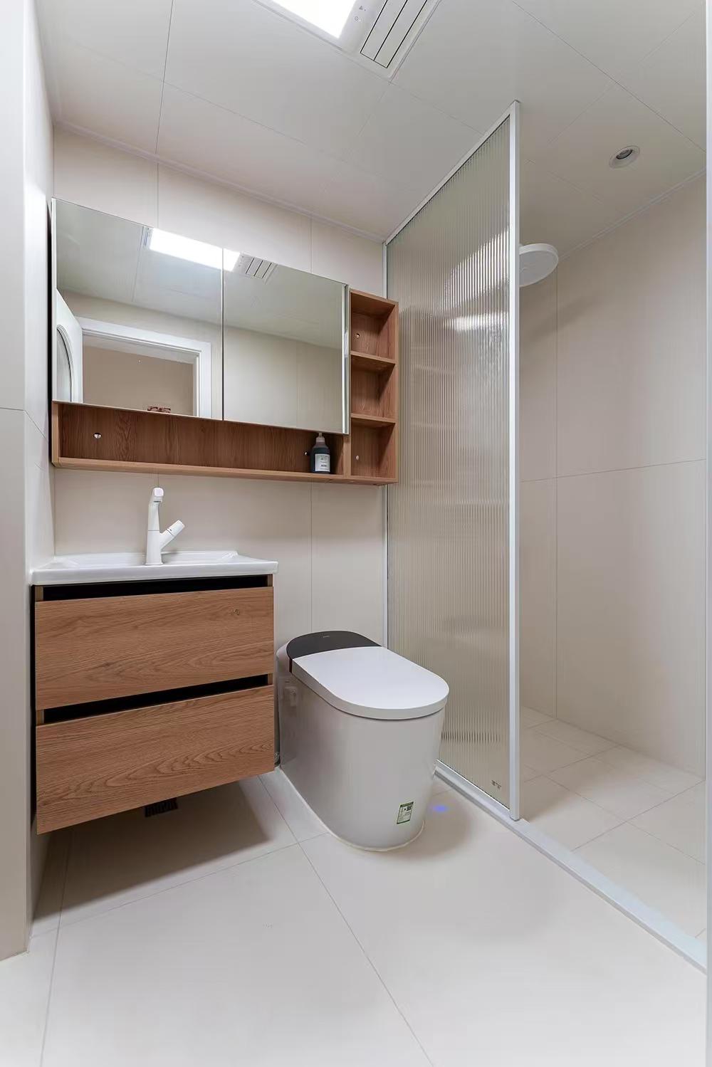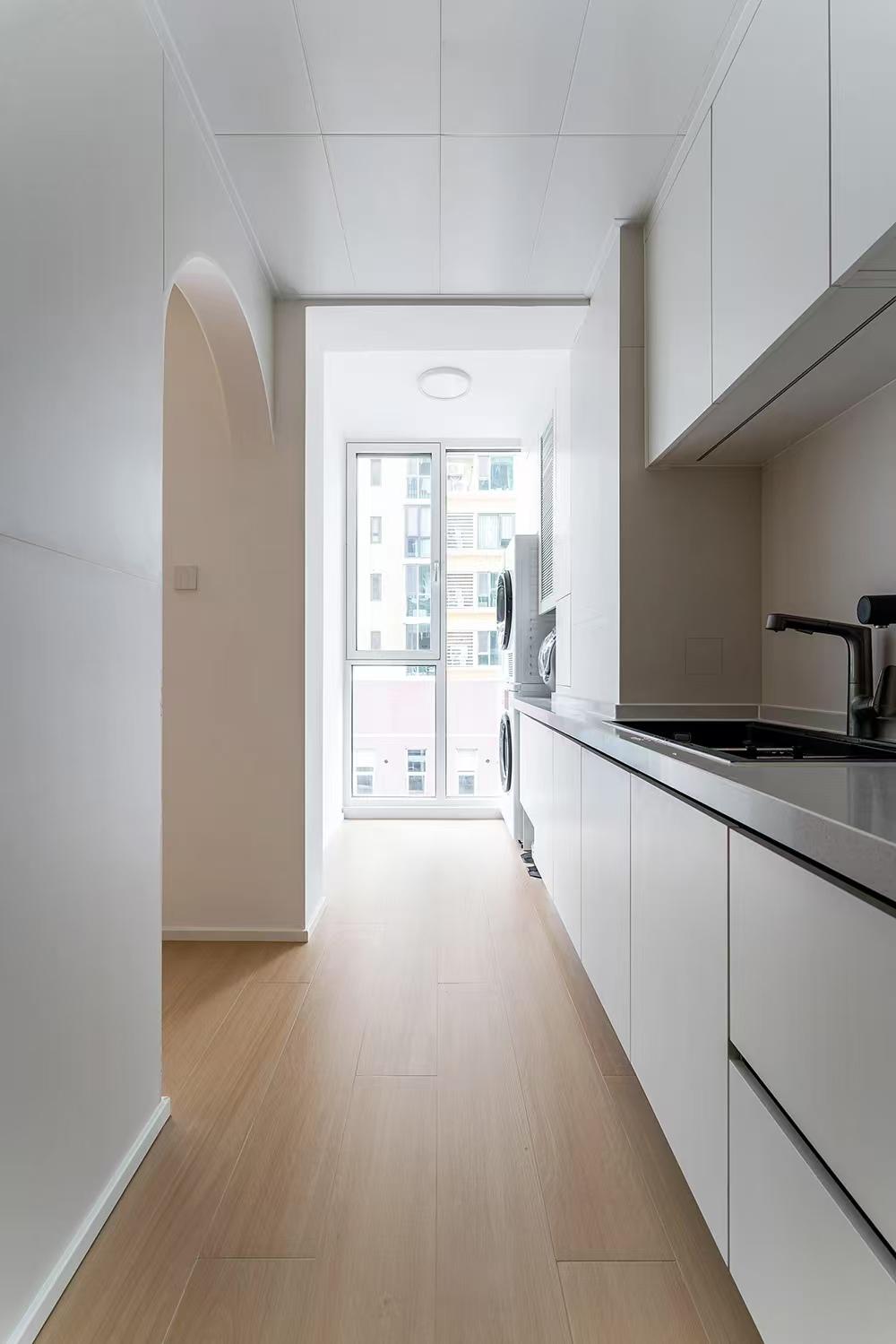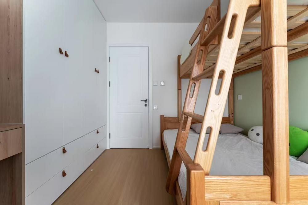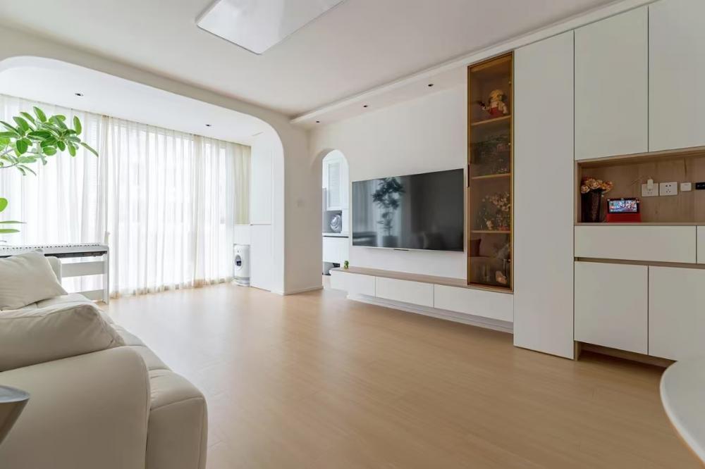 這套70㎡小戶型是夫妻二人的居所,未來會迎接小朋友,需適應(yīng)家庭結(jié)構(gòu)變化,合理規(guī)劃空間。屋主小姐姐要求明確,家中自采暖并鋪設(shè)電地暖。因?qū)痈邇H2.5米,期望吊頂輕盈,不降低空間感?;A(chǔ)裝修偏好簡潔溫馨風(fēng)格,同時注重收納設(shè)計,旨在打造既溫馨又易于打理的生活環(huán)境,為未來的小家庭提供舒適溫馨的居住體驗。 整體空間以奶油白+原木色為主調(diào),化繁為簡的硬裝設(shè)計,自然舒適,搭配原木質(zhì)感的家居,碰撞出溫馨清爽的氣息。 原木長條木紋磚通鋪,顯大且導(dǎo)熱佳,環(huán)氧彩砂美縫細膩自然。奶白色家具,色調(diào)統(tǒng)一,營造寧靜空間。 奶油色墻頂與地面層次分明,弧形門洞與綠植增添生機。地板延伸至陽臺,視覺連貫,科技布沙發(fā)舒適,無茶幾設(shè)計預(yù)留更多互動空間。 電視柜與鞋柜連接,讓整面墻體充分利用,一門到頂?shù)母吖瘢芎玫貙刹糠止耋w連接。 客廳無茶幾設(shè)計為以后有小朋友時,留出更多的空間與家人互動、玩耍。 1.6米鞋柜,預(yù)留家居鞋位及平臺收納,超大落地鏡實用且顯空間。超大落地穿衣鏡,不僅實用還讓小空間更顯大。 右側(cè)做600mm深的餐邊柜,留出足夠的臺面當(dāng)作電器操作區(qū),日常水吧和小電器都可以在這邊使用。冰箱選擇零嵌式,跟柜體保持平整。圓形折疊餐桌,滿足日常兩人用餐的同時,也調(diào)整了空間的靈活性。 廚房的弧形門洞,用圓角處理了陽角部分,加上奶呼呼的涂料直接通刷過去,為空間增添柔美感。L型的操作臺,滿足洗菜、切菜、炒菜的動線,整體木紋磚顯得溫馨又好打理。 半開放式廚房,選擇最大吸力的集成灶。櫥柜也直接通向陽臺,沒有做過多的分割。 生活陽臺洗衣機烘干機上方做高柜增加儲物量。右側(cè)櫥柜臺面延伸過來,下方放置掃地機器人;中間臺面放置內(nèi)衣機;上方做百葉門隱藏壁掛爐,一組柜子就這樣同時滿足多種功能。 床頭做木色木飾面背板,右側(cè)延伸出床頭抽屜柜,左側(cè)增加可伸縮小吊燈,可任意調(diào)節(jié)。床頭柜上方的木色隔板,用來放置投影儀。懸浮床設(shè)計簡約,床下可放置儲物。轉(zhuǎn)角大飄窗做隱藏式窗簾,坐在飄窗上感受休閑時光~ 實木上下床,有小朋友后即使老人過來也可以同時居住。 靠近窗邊留置一組1.2米寬的書桌,上方開放格區(qū)域放置常用書籍。白色整面墻衣柜,下方兩排抽屜做25cm深度,收納小件衣物和小朋友的玩具。 長條大磚墻面豎鋪,淋浴房地面小方磚防滑。洗手盆懸浮易潔,鏡柜加長,增加收納。整體奶白色調(diào)搭配木紋增加質(zhì)感。