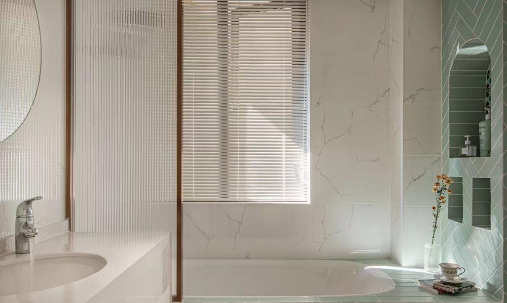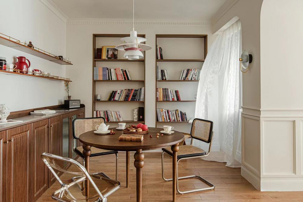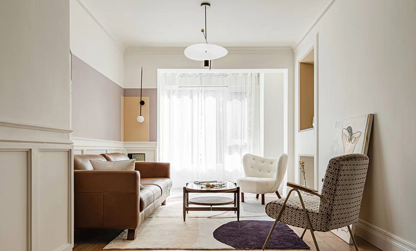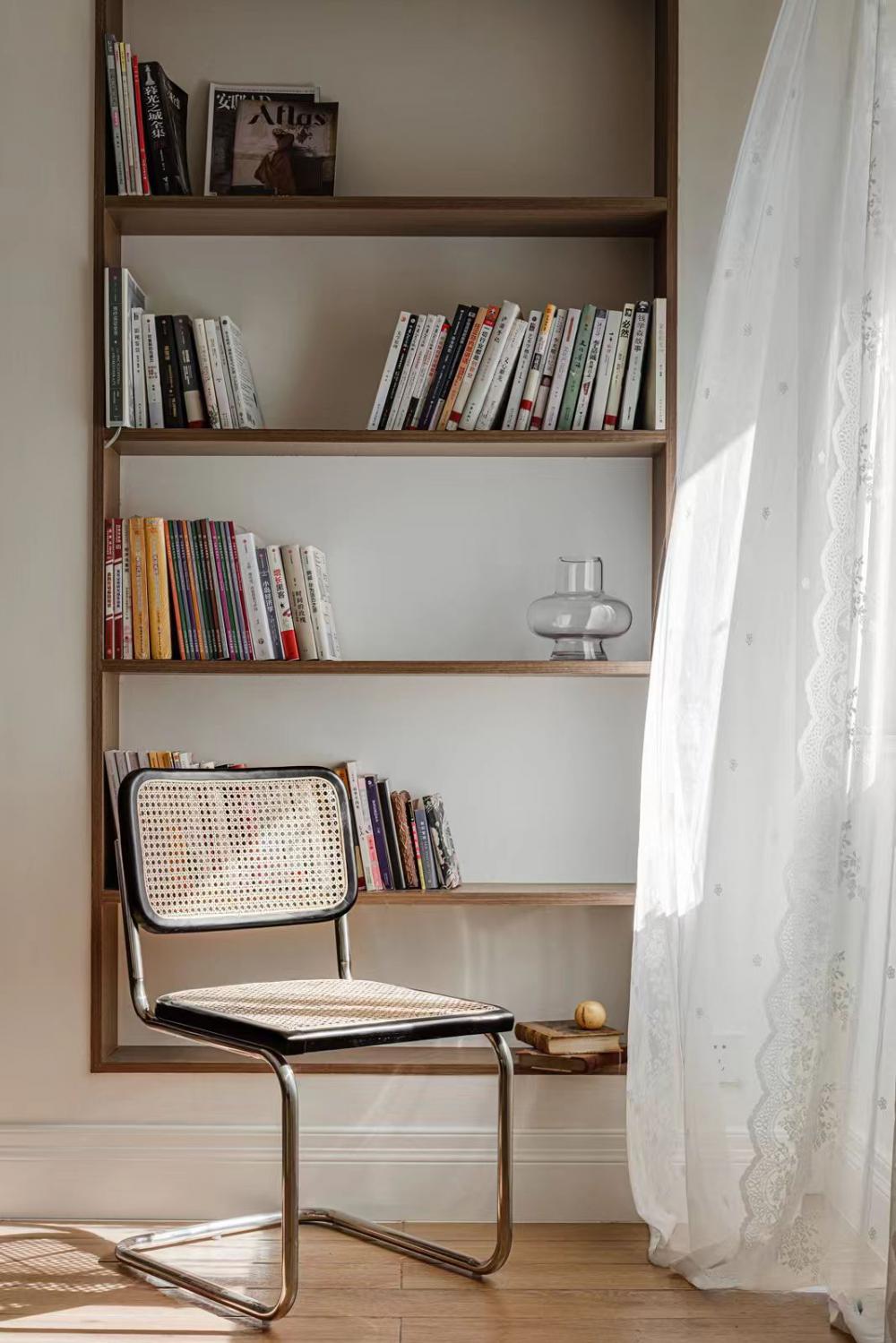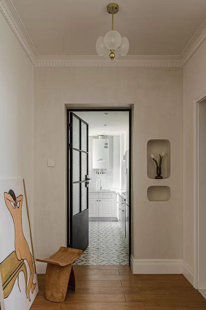 這是一套面積為91平米的兩居改一居的家裝案例,業(yè)主是一位對待生活,認真且珍惜;積極主動,對一切都充滿美好的憧憬。 走進室內,溫暖柔和的色彩彌漫了整個空間,目之所及,皆是輕松治愈的調調。 棕色的皮質沙發(fā)搭配兩把單人沙發(fā),中間鋪上素色的地毯、擺上輕盈的茶幾,打造輕松舒適的對話氛圍。 沙發(fā)背景做了半高的護墻板,再搭配灰紫色、黃色色塊,與白色的拼接,富有層次。 從餐廳一角看客廳,兩個空間之間以戶型的吊頂與柱體形成功能區(qū)間的分隔。 改造后沒有次臥,擴大后的餐廳空間,擁有了更豐富的功能。 通往廚房的過道,斑駁的藝術漆、老鐵藝門、地板磚是空間的新奇搭配。 陽光極好的睡眠區(qū),肌理質感遍布每個面,多樣化的照明布置,隨時切換不同生活情景。 在保證空間舒適尺度的前提擴張墻體,臥室擁有三組衣柜,實用大大提升。 靠窗定制書桌+收納柜,?冬日的午后在這里閱讀,享受一個人的寧靜時光。 當百葉翻動,陽光灑到讓人即刻安靜的淺綠色表面,不同色彩的搭配,烘托出謐靜的氛圍。清新的瓷磚采用人字鋪的形式,也能格外的出彩。