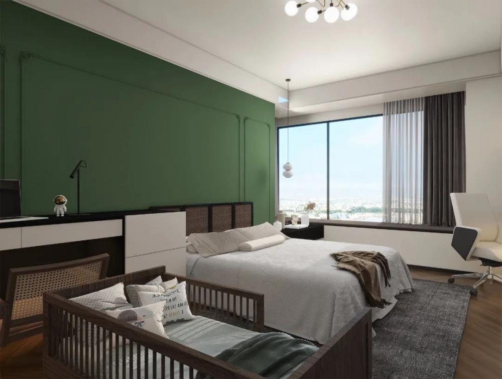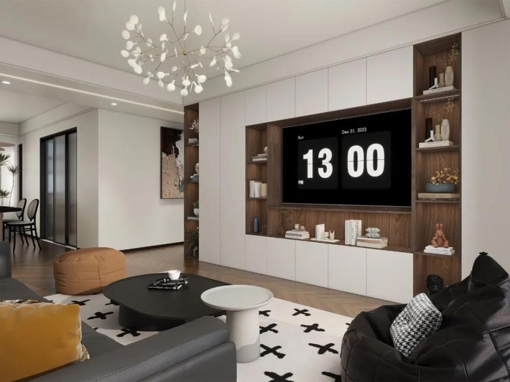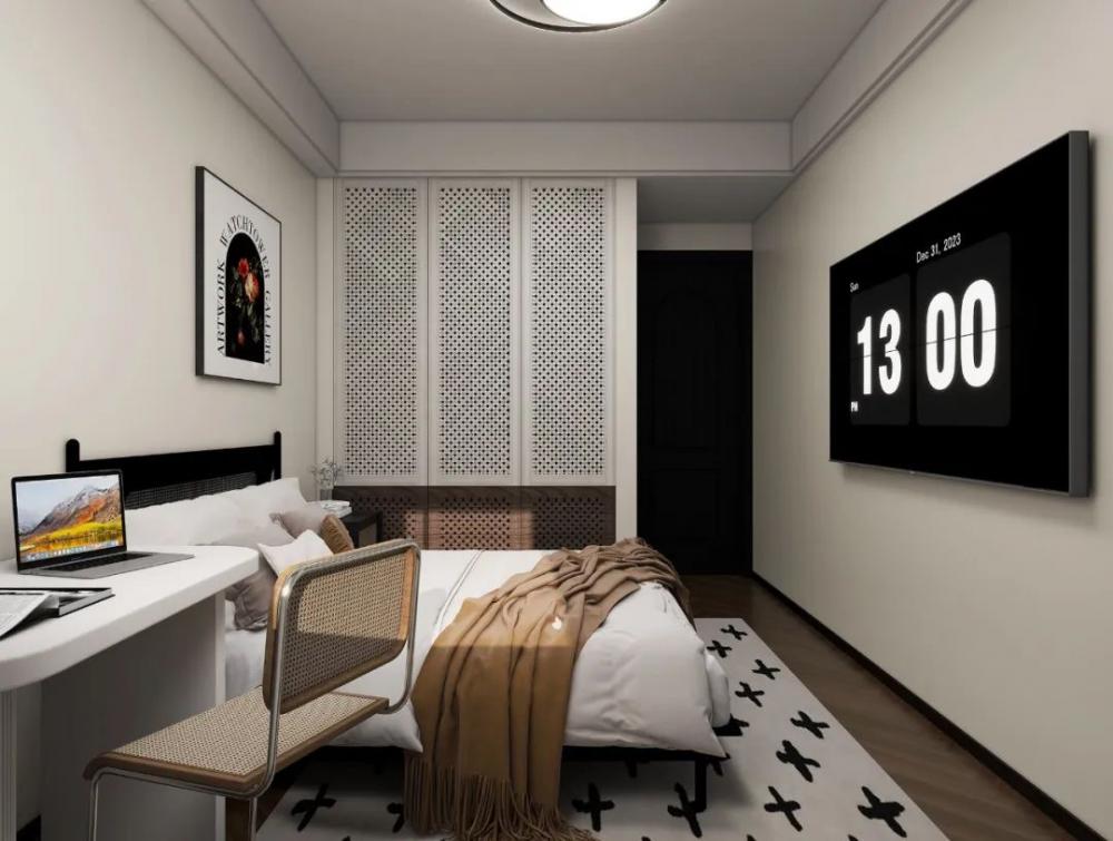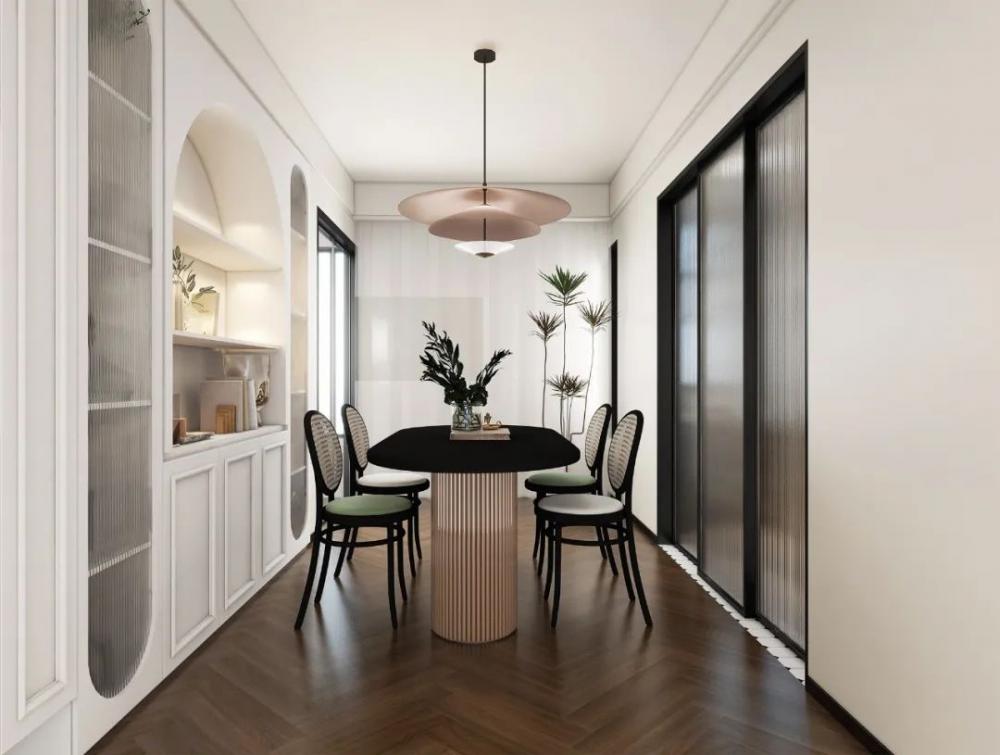 這是一套 3 房 2 廳 2 衛(wèi)的房子,他們鐘情混搭風,客廳融入簡約與時尚元素,餐廳打造溫馨角落,臥室根據(jù)家人喜好設計。歷經數(shù)月,從圖紙到實景,夢想家完美呈現(xiàn),開啟一家三口幸福新生活??蛷d作為家庭活動的中心,其設計尤為引人注目。橫廳的布局不僅巧妙地拓寬了視覺空間,更實現(xiàn)了待客與家庭互動功能的完美融合。大屏幕電視機的引入,無疑為家庭娛樂生活增添了無限活力與可能??蛷d用黑白灰打底,搭配個性吊燈,彰顯時尚;餐廳的弧形餐邊柜,是妻子一眼相中的浪漫;廚房黑白瓷磚碰撞,滿是煙火氣。廚房櫥柜采用經典的黑白配色,沉穩(wěn)大氣。墻面上的幾何圖案瓷磚為空間增添活潑感,同時易于清潔。合理的操作臺面布局,方便日常烹飪操作,各類廚房電器也能有序放置。餐廳與客廳相連,空間開闊。黑色圓形餐桌搭配造型別致的椅子,富有設計感。一旁的白色餐邊柜帶有弧形元素,美觀又實用,可用于收納餐具和展示藏品。頂部的吊燈與整體風格相呼應,營造出舒適的用餐氛圍。主臥的整體色調柔和,一側的綠色墻面為空間帶來生機。白色的衣柜提供充足收納空間,床頭吊燈滿足夜間照明需求,適合作為兒童房或客房使用。這間臥室空間寬敞,以簡約設計為主。床頭掛畫為空間增添藝術氣息,深木色地板搭配淺色系床品,營造出寧靜舒適的睡眠環(huán)境。主臥衛(wèi)生間在設計風格上獨具特色。公衛(wèi)以墨綠色為主色調,搭配黑白幾何圖案瓷磚,時尚又個性。洗漱臺、馬桶、淋浴區(qū)布局合理,滿足日常使用需求。墨綠色為主色調和主臥風格相互呼應,風格統(tǒng)一,是業(yè)主鐘情的混搭風,這套混搭風的房子,通過巧妙融合不同元素,既保證了空間的實用性,又營造出獨特的美學氛圍,為一家三口打造出舒適、時尚且溫馨的居住環(huán)境。
