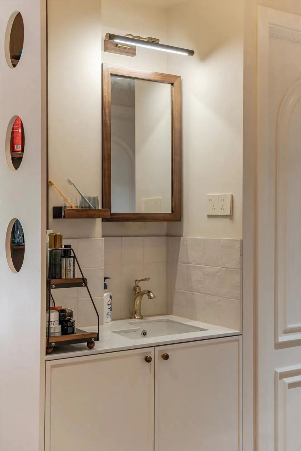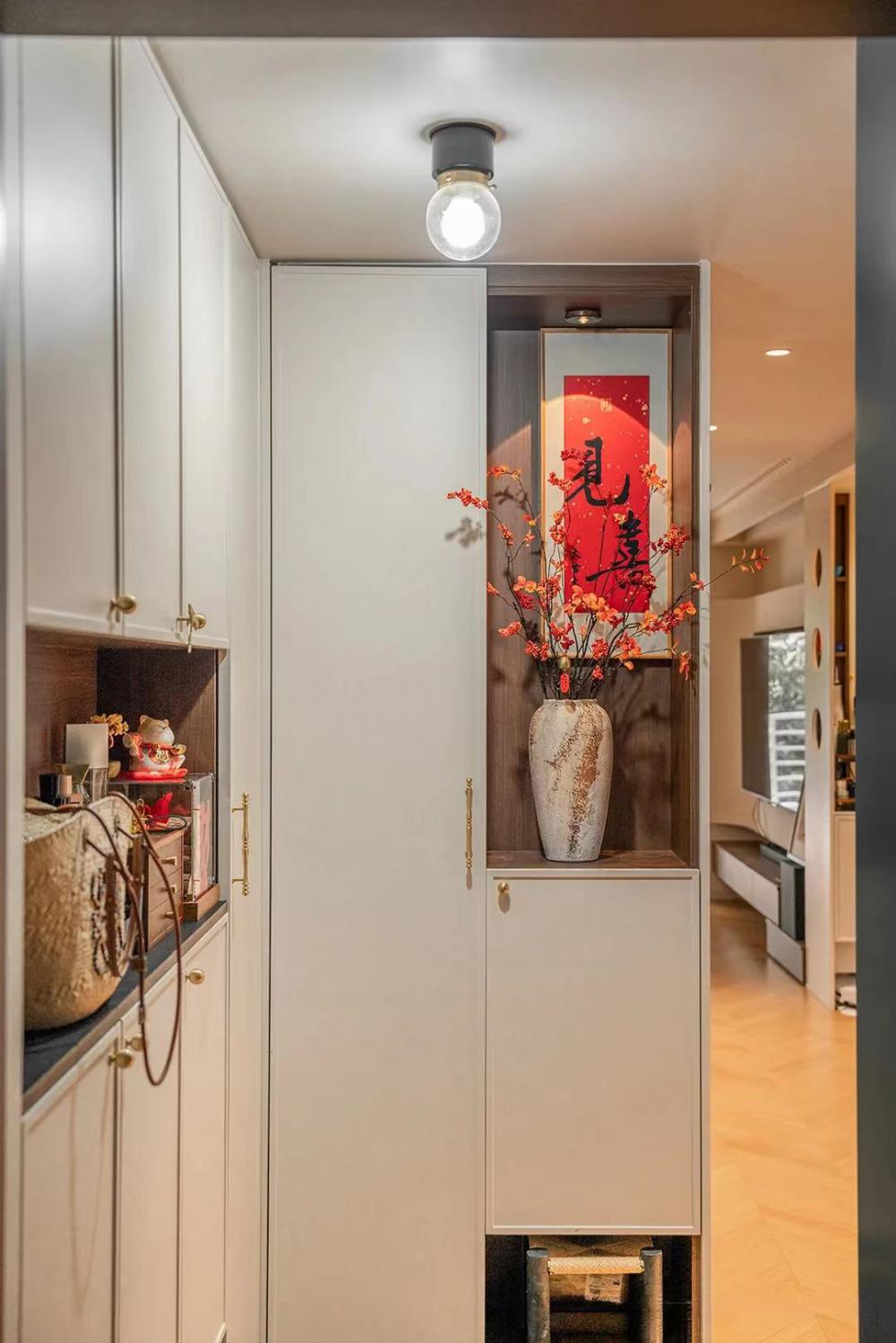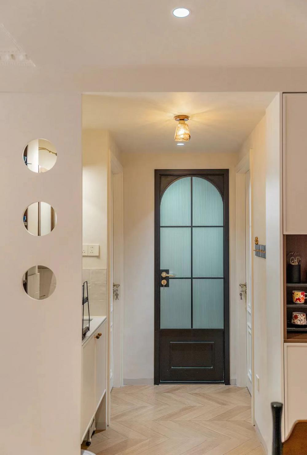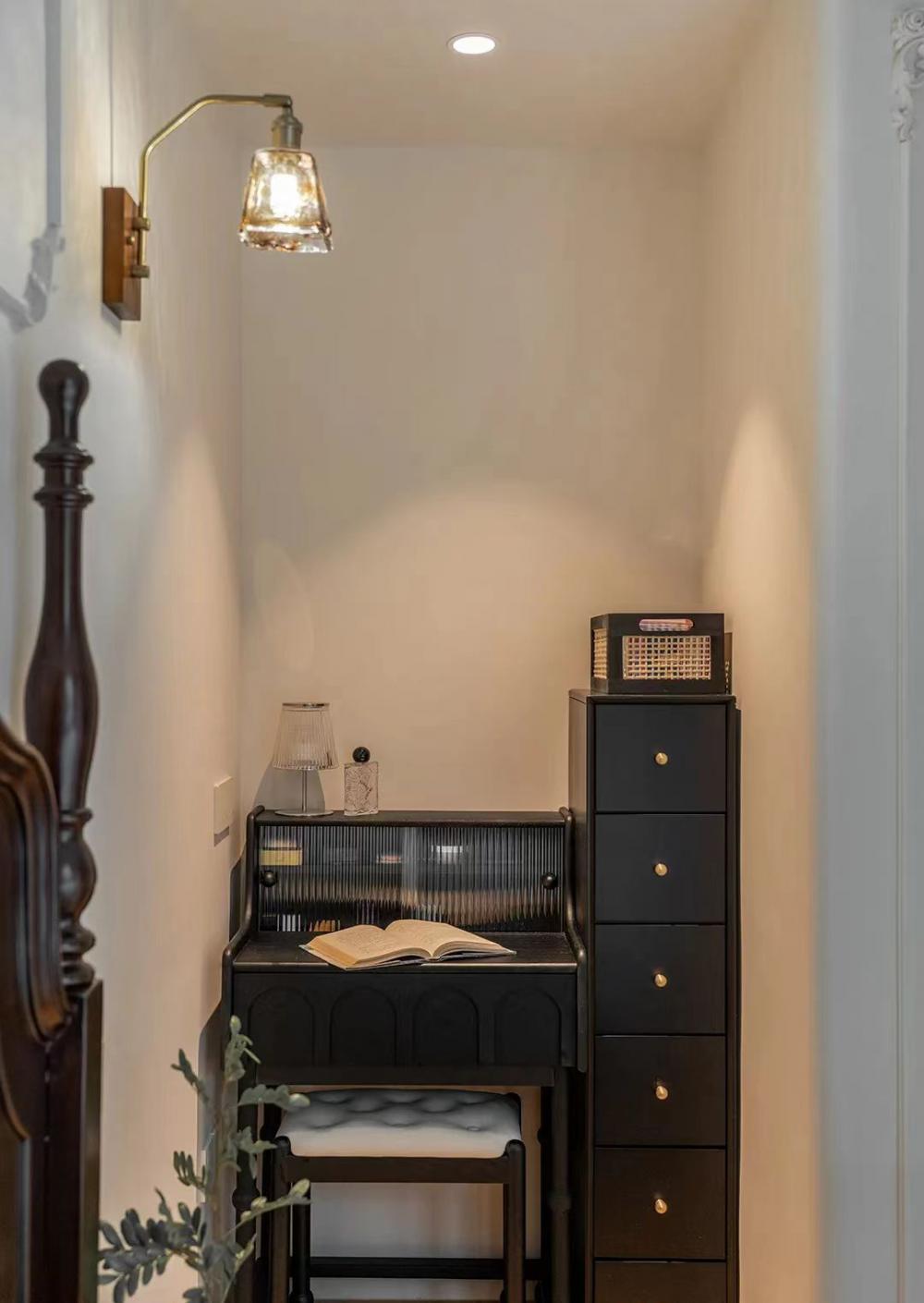 這套83㎡舊房,屋主是鐘愛胡桃木女主人與酷黑風(fēng)格男主人。在升級三室兩廳兩衛(wèi)格局(增玄關(guān)/主衛(wèi)、開放式廚房、變形餐廳)的同時(shí),用留白襯托黑棕主調(diào)。筆直線條的胡桃木柜體與黑色金屬碰撞,剛?cè)岵?jì)的設(shè)計(jì)既保留深色質(zhì)感,又通過光線層次營造精致浪漫的共生空間。 入戶改造后實(shí)現(xiàn)了獨(dú)立的玄關(guān)區(qū)域,收納空間直接倍增,增加玄關(guān)端景,開門見喜! 客廳陽臺門外推,即保留了陽臺的透氣性以及偶爾曬衣服的功能,又使客廳的使用面積擴(kuò)大。以簡約圓潤的弧形元素,賦予空間高級雅致感覺。 納入室內(nèi)的陽臺空間一側(cè)是洗衣機(jī)烘干機(jī),一邊是開放式辦公區(qū)。 陽臺半留半封的設(shè)計(jì)真的很nice,值得借鑒。 整個餐廳部分配色與客廳一致,整體留白居多,用黑色與胡桃木跳色,簡約溫馨有格調(diào)。 餐廳有個隱藏功能,可以秒變成一個小臥室,是為將來做準(zhǔn)備的,天花上面預(yù)留軌道,柜門里面藏起來的是推拉門,放上折疊床,把門一拉就是一個小臥室。 餐桌對面設(shè)計(jì)了餐邊柜,這里主要是男屋主的咖啡區(qū)以及杯子的收納區(qū)。 開放式廚房確實(shí)很適合他們,兩人平時(shí)工作都很忙,在家做飯的次數(shù)比較少,廚房的功能是夠用就好。 公衛(wèi)重新改造成了干濕分離,洗手臺外置,精致的屋主臺面的置物架放滿了女主人的護(hù)膚品。 主臥墻面添加法式線條元素,提升空間精致度。飄窗做收納柜,可做臥室生活雜物收納,增加空間收納。 主衛(wèi),用了屋主喜歡的復(fù)古小兔子磚,上墻是純凈的黑與白,下墻用淡雅的粉色搭配,粉黑搭配甜而不膩,使空間更加俏皮可愛。 次臥的清爽復(fù)古風(fēng),床,床頭柜,四件套等都是選了深色復(fù)古款。床尾的書桌做了一個圓弧內(nèi)凹的造型,打薄了墻體的厚度,給空間增加了深度的使用空間。 輕法式衛(wèi)生間,墨綠色的瓷磚搭配法式燕子磚,極具復(fù)古特性,提升空間層次感。馬桶水箱上方?jīng)]有做封閉的柜子,而是選擇了用編織收納籃,讓整個洗手間更有一種鄉(xiāng)村的休閑感,框內(nèi)放置的都是常用品。