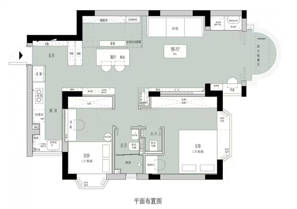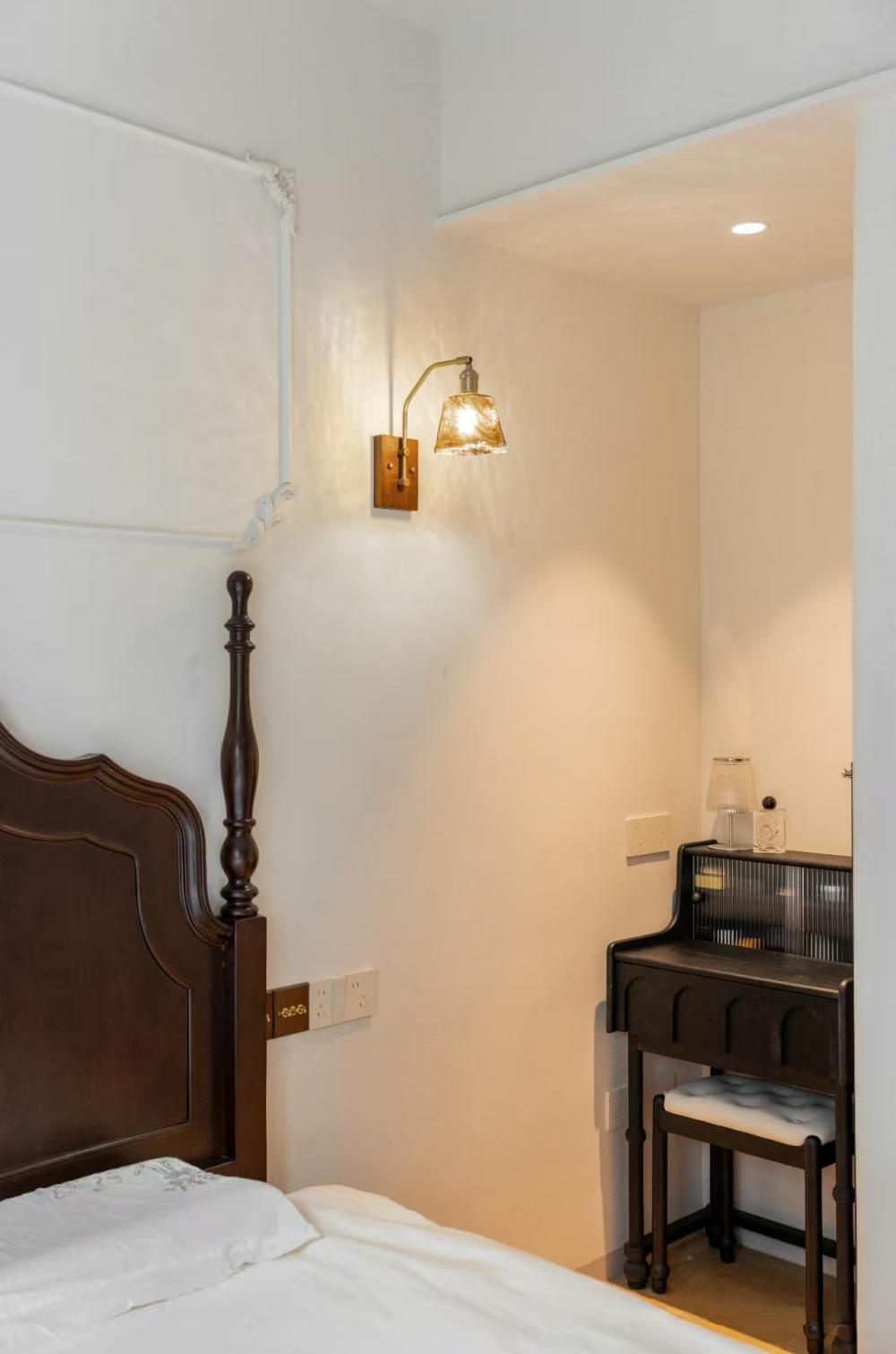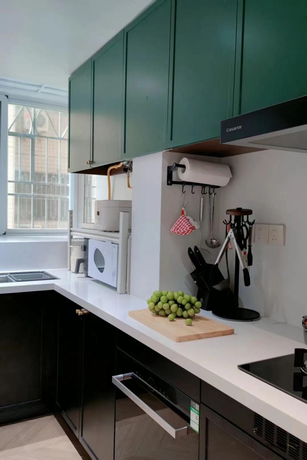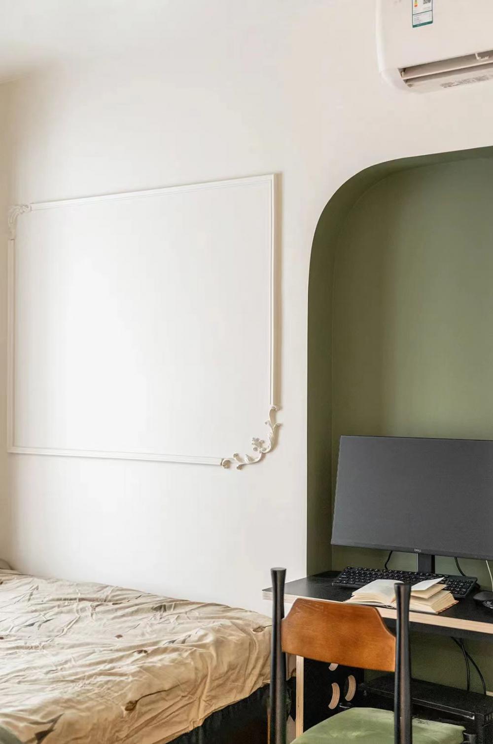 這套83㎡舊房,屋主是鐘愛胡桃木女主人與酷黑風(fēng)格男主人。在升級三室兩廳兩衛(wèi)格局(增玄關(guān)/主衛(wèi)、開放式廚房、變形餐廳)的同時(shí),用留白襯托黑棕主調(diào)。筆直線條的胡桃木柜體與黑色金屬碰撞,剛?cè)岵?jì)的設(shè)計(jì)既保留深色質(zhì)感,又通過光線層次營造精致浪漫的共生空間。 入戶改造后實(shí)現(xiàn)了獨(dú)立的玄關(guān)區(qū)域,收納空間直接倍增,增加玄關(guān)端景,開門見喜! 客廳陽臺門外推,即保留了陽臺的透氣性以及偶爾曬衣服的功能,又使客廳的使用面積擴(kuò)大。以簡約圓潤的弧形元素,賦予空間高級雅致感覺。 納入室內(nèi)的陽臺空間一側(cè)是洗衣機(jī)烘干機(jī),一邊是開放式辦公區(qū)。 陽臺半留半封的設(shè)計(jì)真的很nice,值得借鑒。 整個餐廳部分配色與客廳一致,整體留白居多,用黑色與胡桃木跳色,簡約溫馨有格調(diào)。 餐廳有個隱藏功能,可以秒變成一個小臥室,是為將來做準(zhǔn)備的,天花上面預(yù)留軌道,柜門里面藏起來的是推拉門,放上折疊床,把門一拉就是一個小臥室。 餐桌對面設(shè)計(jì)了餐邊柜,這里主要是男屋主的咖啡區(qū)以及杯子的收納區(qū)。 開放式廚房確實(shí)很適合他們,兩人平時(shí)工作都很忙,在家做飯的次數(shù)比較少,廚房的功能是夠用就好。 公衛(wèi)重新改造成了干濕分離,洗手臺外置,精致的屋主臺面的置物架放滿了女主人的護(hù)膚品。 主臥墻面添加法式線條元素,提升空間精致度。飄窗做收納柜,可做臥室生活雜物收納,增加空間收納。 主衛(wèi),用了屋主喜歡的復(fù)古小兔子磚,上墻是純凈的黑與白,下墻用淡雅的粉色搭配,粉黑搭配甜而不膩,使空間更加俏皮可愛。 次臥的清爽復(fù)古風(fēng),床,床頭柜,四件套等都是選了深色復(fù)古款。床尾的書桌做了一個圓弧內(nèi)凹的造型,打薄了墻體的厚度,給空間增加了深度的使用空間。 輕法式衛(wèi)生間,墨綠色的瓷磚搭配法式燕子磚,極具復(fù)古特性,提升空間層次感。馬桶水箱上方?jīng)]有做封閉的柜子,而是選擇了用編織收納籃,讓整個洗手間更有一種鄉(xiāng)村的休閑感,框內(nèi)放置的都是常用品。