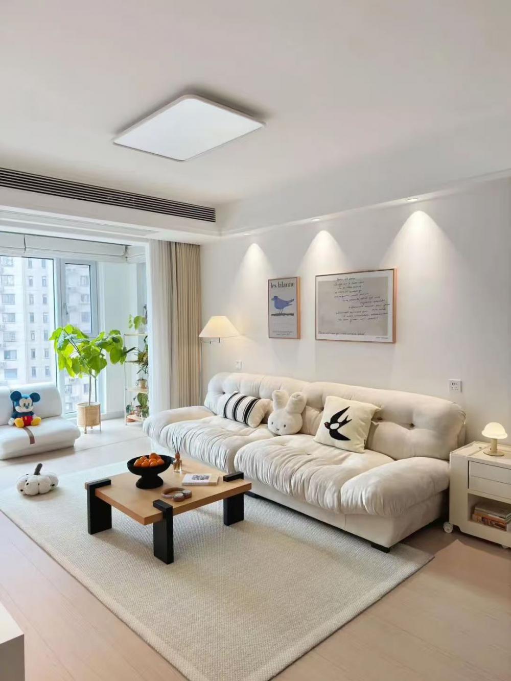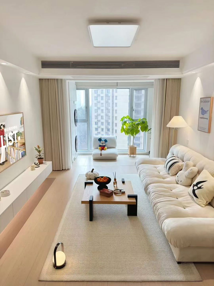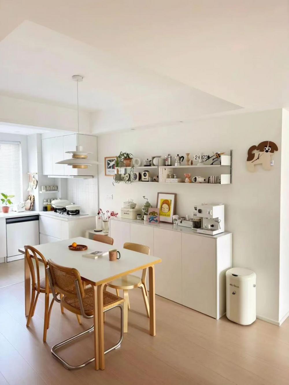 ??小家面積套內(nèi)90平三室兩廳一衛(wèi) 1. 地面材質(zhì)選擇 客廳與臥室:鋪設(shè)暖色系復(fù)合地板,營造出溫暖舒適的氛圍。 餐廳與陽臺:采用同色系木紋磚,既統(tǒng)一了視覺效果,又方便清潔,實(shí)用性滿分! 2. 墻面與家具搭配 全屋刷暖白色乳膠漆,搭配白色衣柜、木門和4cm的踢腳線,整體感覺清新明亮,空間感瞬間提升! 3. 吊頂設(shè)計(jì) 僅做了簡單的雙眼皮邊吊,不壓低層高,還顯得大方耐看,簡約就是美! 小建議:在裝修時,色彩搭配要注意統(tǒng)一,材質(zhì)選擇也要考慮實(shí)用性和美觀性。比如,客廳和臥室選擇暖色系地板,可以增加溫馨感;而餐廳和陽臺使用木紋磚,則方便清潔打理。