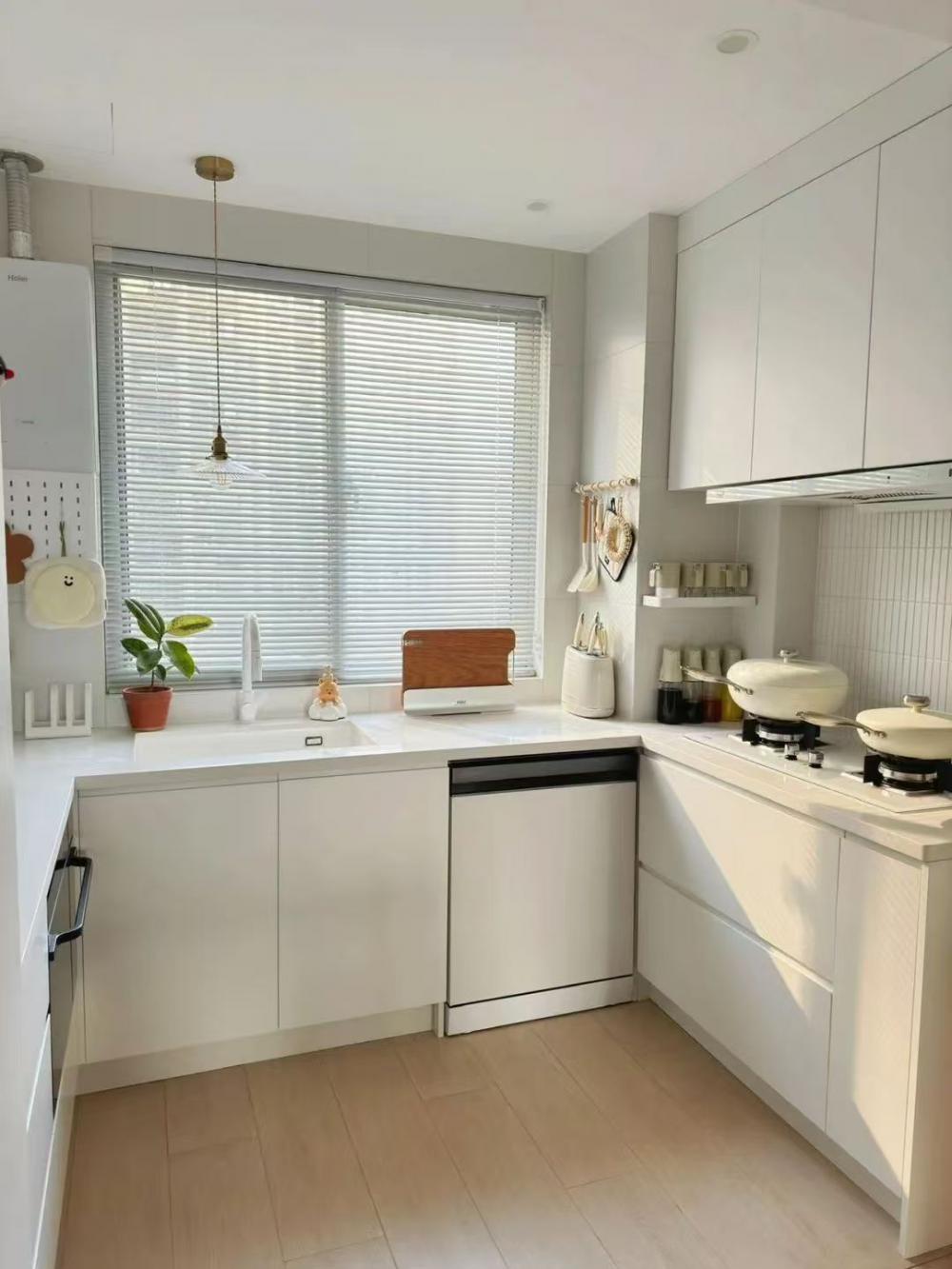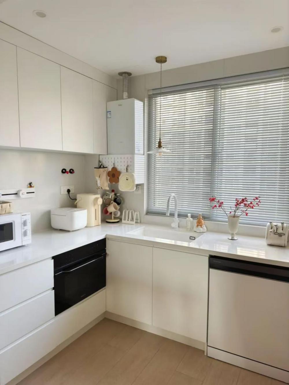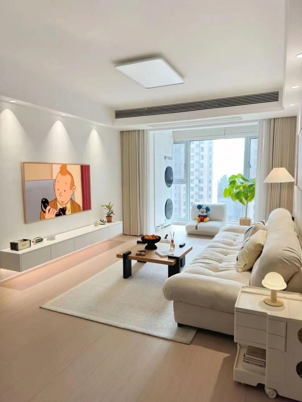 ??小家面積套內(nèi)90平三室兩廳一衛(wèi) 1. 地面材質(zhì)選擇 客廳與臥室:鋪設(shè)暖色系復(fù)合地板,營造出溫暖舒適的氛圍。 餐廳與陽臺:采用同色系木紋磚,既統(tǒng)一了視覺效果,又方便清潔,實(shí)用性滿分! 2. 墻面與家具搭配 全屋刷暖白色乳膠漆,搭配白色衣柜、木門和4cm的踢腳線,整體感覺清新明亮,空間感瞬間提升! 3. 吊頂設(shè)計(jì) 僅做了簡單的雙眼皮邊吊,不壓低層高,還顯得大方耐看,簡約就是美! 小建議:在裝修時,色彩搭配要注意統(tǒng)一,材質(zhì)選擇也要考慮實(shí)用性和美觀性。比如,客廳和臥室選擇暖色系地板,可以增加溫馨感;而餐廳和陽臺使用木紋磚,則方便清潔打理。