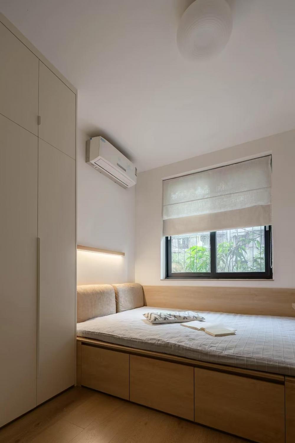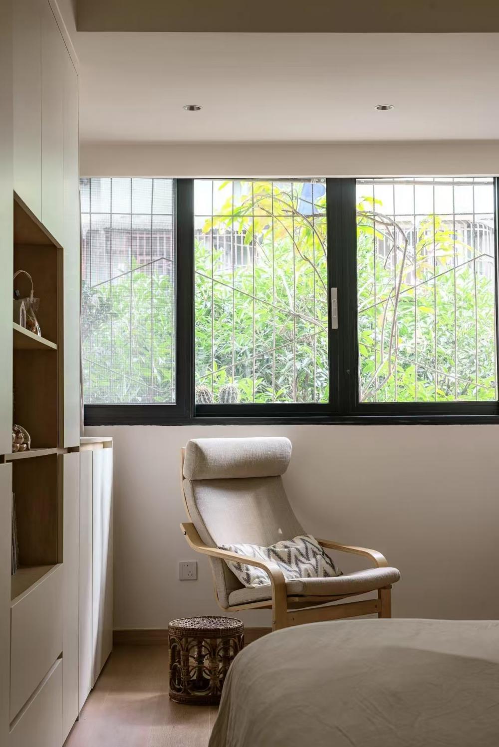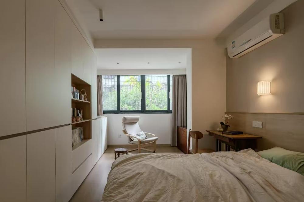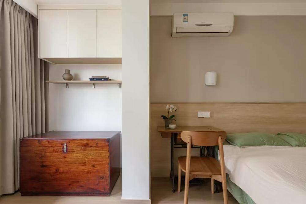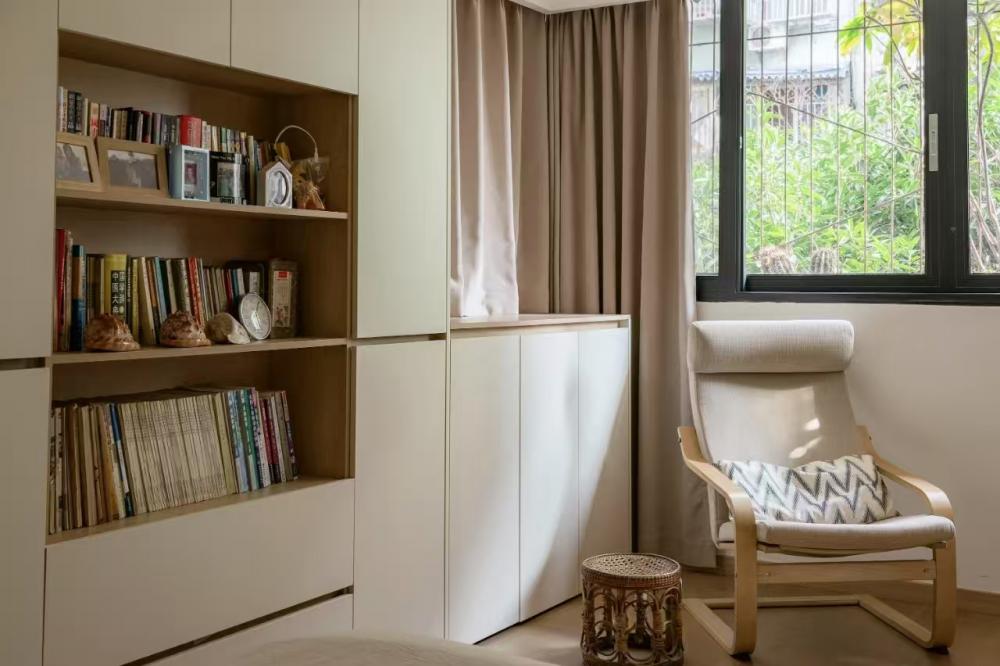 這是一套面積為54平米的老房改造案例,業(yè)主希望通過改造,為父母打造一個(gè)適合老年人居住的頤養(yǎng)環(huán)境。 原始戶型緊湊,存在廚房墻面不規(guī)整、次臥變雜物間、陽臺(tái)變休息區(qū)影響采光、公區(qū)變小且功能多、雜物多導(dǎo)致電器擺放不合理等問題。 根據(jù)業(yè)主需求,做出了如下調(diào)整: 1、保留磚混結(jié)構(gòu),僅微調(diào)廚房墻體改半開放; 2、拆除陽臺(tái)小次臥,優(yōu)化廚房-餐廳-客廳動(dòng)線; 3、移洗衣機(jī),優(yōu)化衛(wèi)生間布局并增設(shè)適老化設(shè)施; 4、調(diào)整主臥門洞,增設(shè)儲(chǔ)物柜; 5、次臥增設(shè)儲(chǔ)物柜與榻榻米,滿足儲(chǔ)物與偶爾住宿需求。 入戶左側(cè)搭配折疊換鞋凳不占用空間,右側(cè)鞋柜下方設(shè)計(jì)成開放格放置平時(shí)日常穿脫的鞋子。 改造后,客廳視野變寬不少,同時(shí)也能將室外樹景以及光線很好的引入室內(nèi)。沙發(fā)還是原來的沙發(fā),但重新定做了沙發(fā)墊,使其與整個(gè)家更加匹配。 客廳旁就是餐廳區(qū)域,利用陽臺(tái)的位置設(shè)計(jì)出單獨(dú)的就餐空間。利用沙發(fā)到陽臺(tái)中間的空間設(shè)計(jì)了一個(gè)到頂餐邊柜,用于儲(chǔ)物以及放置叔叔的微波爐等。餐桌選用可伸縮式的,即便家里有客人到訪也完全無壓力應(yīng)對(duì)。 洗衣機(jī)置于廚房柱間,利用轉(zhuǎn)角分隔廚房與餐廳,并配小推車收納清潔用品。 敲掉斜面墻,并以此作為進(jìn)入廚房的門洞,空間動(dòng)線更為合理。 電視墻旁就是衛(wèi)生間區(qū)域,將衛(wèi)生間干區(qū)外移,下方留出位置放置掃地機(jī)。內(nèi)部調(diào)整了動(dòng)線,增加了翻折座椅,為了老年人進(jìn)出方便,取消淋浴擋水條或者下沉式淋浴方式,淋浴和馬桶內(nèi)外做平,以拉通長(zhǎng)條地漏作為分割。 次臥進(jìn)門左側(cè)安裝了L型到頂柜體用于儲(chǔ)物,榻榻米下方也是巨大的儲(chǔ)物空間。榻榻米床頭也安裝了燈帶,方便后期使用。 主臥移動(dòng)了門洞位置后,利用墻體的寬度在床尾設(shè)置了一字型的儲(chǔ)物柜,中間的開放格可放置常讀的書籍以及一些漂亮的陳列品。一側(cè)床頭放置阿姨的縫紉機(jī)。同側(cè)陽臺(tái)則擺放了阿姨的樟木箱。 陽臺(tái)的另一側(cè)則是整個(gè)主臥的休息區(qū),平時(shí)借著陽光好的時(shí)候可以在此小憩、閱讀、放松。