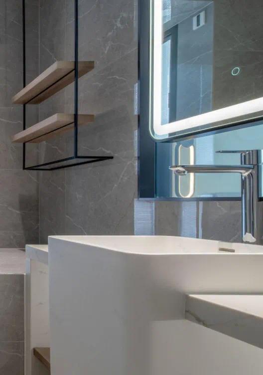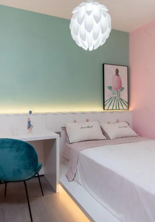 今天這套案例是一套155㎡的大戶(hù)型,是二次翻新的房子。重新改造設(shè)計(jì)了一番,為了空間顯得更為大氣有質(zhì)感,電視墻選擇了大理石,背景墻選擇了木色和淺灰色護(hù)墻板。顏色選擇更多的是深色淺色搭配,顯得有層次感。女孩房的設(shè)計(jì)不僅溫馨,而且少女心十足。入戶(hù)花園布置成書(shū)房兼客房,太實(shí)用了。真的做到了每一處都喜歡。入戶(hù)進(jìn)門(mén)的玄關(guān)走道,左側(cè)墻面是硬包或護(hù)墻板材質(zhì),線條裝飾增加立體感;右側(cè)是木質(zhì)飾面柜子,深淺搭配形成對(duì)比。左側(cè)掛畫(huà)為空間增添藝術(shù)氣息,成為視覺(jué)點(diǎn)綴??。地面采用大理石或仿大理石瓷磚,光滑平整,質(zhì)感高級(jí),易于清潔維護(hù) 。這是入戶(hù)花園的多功能房,平時(shí)就是書(shū)房,小孩可以在這里學(xué)習(xí) ,自然光透過(guò)白色窗紗灑入室內(nèi),光線柔和不刺眼,營(yíng)造出明亮、溫馨氛圍。來(lái)客人的時(shí)候,折疊式床拉下來(lái),便成了短暫的客房。打破傳統(tǒng)隔斷,將餐廳與客廳融合,空間開(kāi)闊通透,增強(qiáng)互動(dòng)性與連貫性,方便日?;顒?dòng)與家人交流。餐桌是巖板材質(zhì),紋理自然、耐磨易清潔。深色皮質(zhì)餐椅簡(jiǎn)約舒適。桌上綠植、水果籃等軟裝增添生機(jī)與生活氣息。選了一個(gè)雙面沙發(fā)對(duì)著陽(yáng)臺(tái)的一面,可以躺在沙發(fā)上看海?;疑M合沙發(fā)搭配同色系抱枕,款式簡(jiǎn)約舒適。電視墻采用大理石與木質(zhì)結(jié)合,大理石紋理自然大氣,木質(zhì)元素溫潤(rùn)。下方懸空電視柜打掃衛(wèi)生更無(wú)死角。環(huán)形主燈設(shè)計(jì)獨(dú)特,提供整體照明;柔和的光線營(yíng)造溫馨氛圍。沙發(fā)背景墻以淺米色為主,搭配黑色邊框,色彩柔和且搭配協(xié)調(diào)。兩面黑色的音響裝置和裝飾畫(huà)起到了點(diǎn)綴和平衡的作用,使整個(gè)空間既沉穩(wěn)又不失活潑。右側(cè)的幾何造型壁燈不僅提供了照明,還成為了空間的裝飾亮。黑白條紋的地毯增添了空間的時(shí)尚感和層次感,與整體色調(diào)相協(xié)調(diào),同時(shí)也起到了劃分空間的作用。主臥室,床為中心布置,簡(jiǎn)潔明了。床靠近窗戶(hù)一側(cè),利于采光和通風(fēng)。床頭墻采用木質(zhì)護(hù)墻板,自然紋理提升質(zhì)感;其余為乳膠漆墻面,平整光滑。地面鋪設(shè)木質(zhì)地板,腳感舒適,溫潤(rùn)質(zhì)感與整體風(fēng)格協(xié)調(diào)。床頭一側(cè)的木質(zhì)懸空設(shè)計(jì)的床頭柜簡(jiǎn)約時(shí)尚,節(jié)省空間的同時(shí)也增添了一份輕盈感。金屬質(zhì)感的臺(tái)燈是現(xiàn)代簡(jiǎn)約風(fēng)格的典型元素,與木質(zhì)床頭柜形成材質(zhì)上的對(duì)比。大窗戶(hù)搭配紗簾和厚窗簾,紗簾可過(guò)濾強(qiáng)光,讓柔和自然光進(jìn)入,厚窗簾可在需要時(shí)遮光 。主臥室騰出的衣帽間,靠飄窗這邊和衣柜一體化定制了一個(gè)梳妝臺(tái),柜體采用淺木色材質(zhì),搭配深色梳妝鏡和抽屜,方便收納。鏡子上方有隱藏式燈帶,提供柔和照明。,千鳥(niǎo)格紋梳妝凳,增添了精致感。深木色的衣柜,部分衣柜采用玻璃門(mén)設(shè)計(jì),玻璃門(mén)內(nèi)的層板有燈光裝飾,增添了空間的質(zhì)感與氛圍感。中間地面放置著一個(gè)千鳥(niǎo)格紋的軟包凳,既可以作為換鞋、整理衣物時(shí)的坐具,其圖案也為空間增添了時(shí)尚精致感。公主房,床頭背景墻以淺綠色為主,另一側(cè)是粉色,色彩柔和溫馨。床頭上方掛有一幅簡(jiǎn)約風(fēng)格的裝飾畫(huà),豐富了墻面視覺(jué)。頂部是造型獨(dú)特的白色花瓣?duì)畹鯚?,設(shè)計(jì)感十足。床頭底部與背景墻上方設(shè)有隱藏?zé)魩?,營(yíng)造出溫馨浪漫的氛圍。廚房布置成倒U型櫥柜,以黑白灰為主色調(diào),白色大理石紋理墻面與地面營(yíng)造出干凈明亮的基礎(chǔ)氛圍;深灰色櫥柜與黑色電器增添沉穩(wěn)質(zhì)感,色彩對(duì)比鮮明,簡(jiǎn)約又不失格調(diào)。吊柜下方安裝燈帶,照亮操作臺(tái)面,避免光線死角,方便切菜、備餐等精細(xì)操作 。衛(wèi)生間整體以灰色大理石瓷磚鋪陳墻面與地面,營(yíng)造出沉穩(wěn)大氣的基調(diào)。白色浴缸搭配銀色淋浴噴頭,簡(jiǎn)潔實(shí)用,左側(cè)掛著白色浴簾,可靈活分隔空間。墻面上安裝著木質(zhì)與黑色金屬結(jié)合的置物架,簡(jiǎn)約又具收納功能。帶燈帶的智能鏡,提供清晰照明