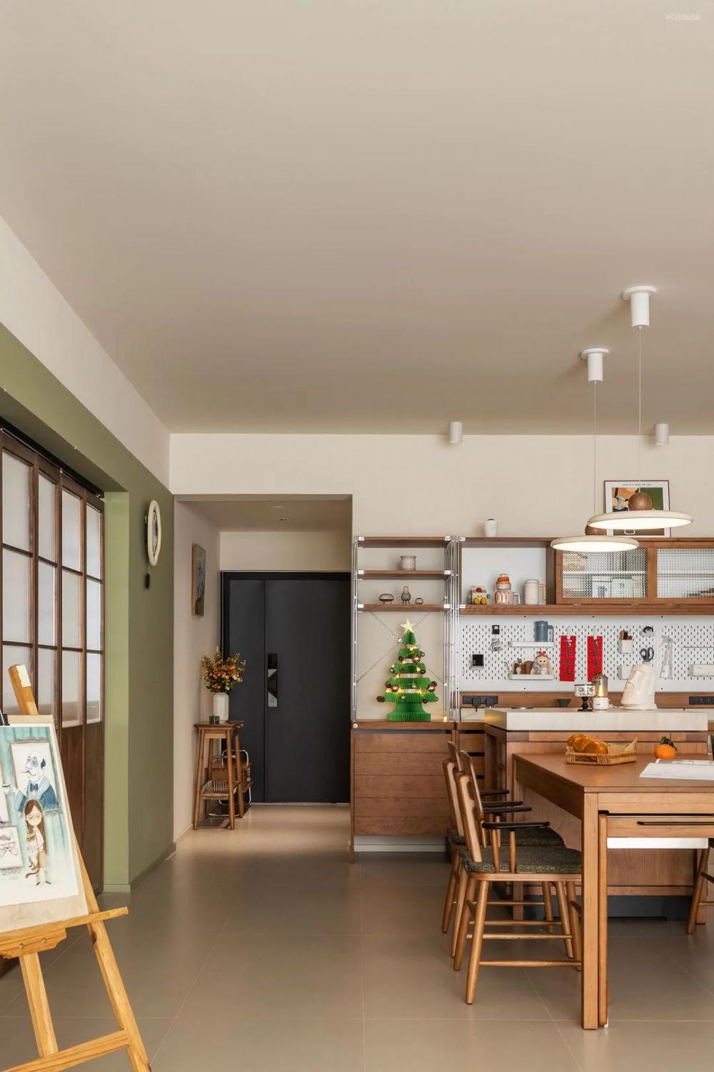 家里的收納部分都為靈活的成品隔板或者家具,減少定制產(chǎn)品的出現(xiàn),這樣的雜貨鋪風(fēng)格,加上業(yè)主收藏的各種飾品,呈現(xiàn)出濃烈的生活氣息。硬裝以極簡為主,沒有過多的造型,墻面有延伸感的裝飾畫能發(fā)散人的思緒,以家具的布局來實現(xiàn)氛圍感。島臺內(nèi)部增加的燈光讓島臺更具輕盈感,氛圍就是依靠各種不同層級的燈光來實現(xiàn)的。用折疊門的方式來做空間分區(qū),綠色的墻面涂料對空間做了更細(xì)致的劃分,從這里開始進(jìn)入到工作間、臥室。原戶型進(jìn)門時雖然預(yù)留了玄關(guān)柜的空間,但進(jìn)深相對淺,使用起來并不好用,衛(wèi)生間處的走廊也過于閉塞。在進(jìn)行墻體拆改之后,西側(cè)擴(kuò)大空間作為進(jìn)門的儲物區(qū)。南側(cè)墻體變薄來增加餐邊柜的可用空間,東側(cè)則以嵌入的方式容納定制柜和洗烘一體機(jī),干濕分區(qū)的路線也變得更為明確。原戶型進(jìn)門時雖然預(yù)留了玄關(guān)柜的空間,但進(jìn)深相對淺,使用起來并不好用,衛(wèi)生間處的走廊也過于閉塞。在進(jìn)行墻體拆改之后,西側(cè)擴(kuò)大空間作為進(jìn)門的儲物區(qū)。南側(cè)墻體變薄來增加餐邊柜的可用空間,東側(cè)則以嵌入的方式容納定制柜和洗烘一體機(jī),干濕分區(qū)的路線也變得更為明確。減少自然采光的阻隔,讓光線更多的進(jìn)入到室內(nèi),生活的煙火氣在此刻得到最大的滿足,家里成品家具除了具有功能性之外,視覺表現(xiàn)力也不差。減少自然采光的阻隔,讓光線更多的進(jìn)入到室內(nèi),生活的煙火氣在此刻得到最大的滿足,家里成品家具除了具有功能性之外,視覺表現(xiàn)力也不差。減少自然采光的阻隔,讓光線更多的進(jìn)入到室內(nèi),生活的煙火氣在此刻得到最大的滿足,家里成品家具除了具有功能性之外,視覺表現(xiàn)力也不差。減少自然采光的阻隔,讓光線更多的進(jìn)入到室內(nèi),生活的煙火氣在此刻得到最大的滿足,家里成品家具除了具有功能性之外,視覺表現(xiàn)力也不差。減少自然采光的阻隔,讓光線更多的進(jìn)入到室內(nèi),生活的煙火氣在此刻得到最大的滿足,家里成品家具除了具有功能性之外,視覺表現(xiàn)力也不差。減少自然采光的阻隔,讓光線更多的進(jìn)入到室內(nèi),生活的煙火氣在此刻得到最大的滿足,家里成品家具除了具有功能性之外,視覺表現(xiàn)力也不差。