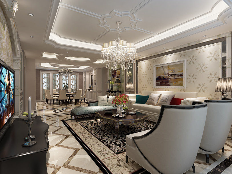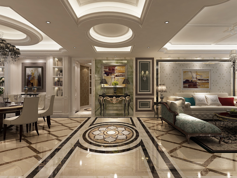 案例詳細:這套房子的風格是歐式,家里長住人口是4口,預留一個老人套房。客廳餐廳是南北通透的,進房間的過道做了一個弧形的過道。把原來進門對房間門的格局改了客戶還是很高興的。家里的顏色基調(diào)為淺色,一些裝飾品做了調(diào)色。進門的門廳端景為玉山大理石,墻面做了一些護墻板,讓墻面不單調(diào),更能體現(xiàn)歐式風格。