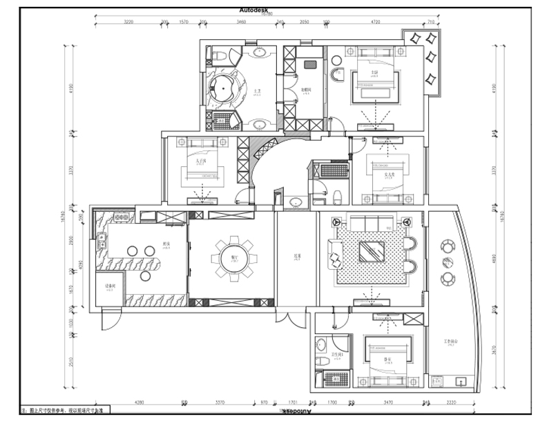 案例詳細:這套房子的風格是歐式,家里長住人口是4口,預留一個老人套房??蛷d餐廳是南北通透的,進房間的過道做了一個弧形的過道。把原來進門對房間門的格局改了客戶還是很高興的。家里的顏色基調(diào)為淺色,一些裝飾品做了調(diào)色。進門的門廳端景為玉山大理石,墻面做了一些護墻板,讓墻面不單調(diào),更能體現(xiàn)歐式風格。
