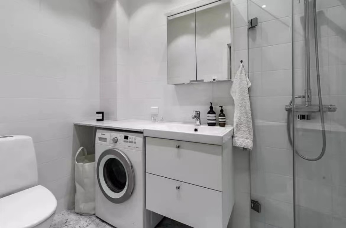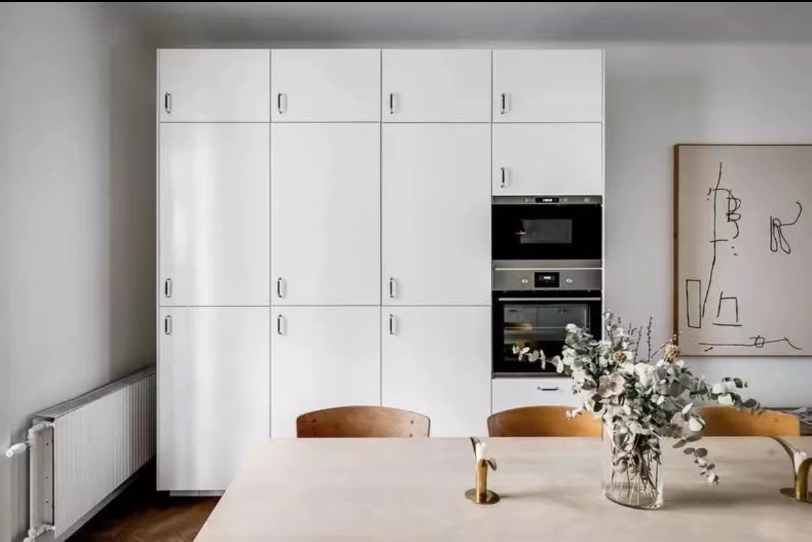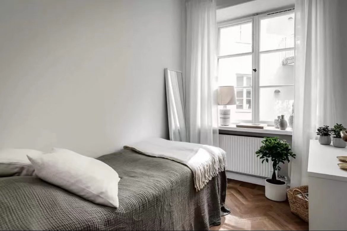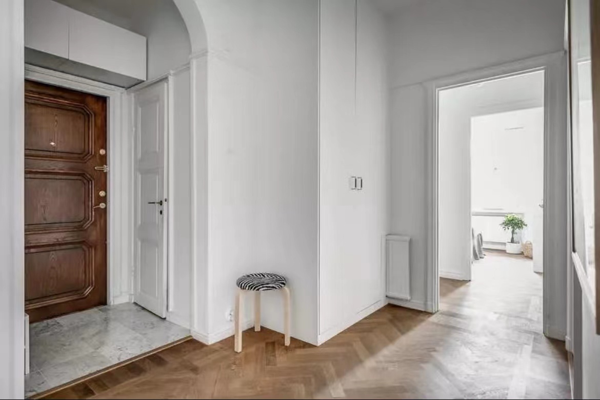 公寓的天花板直接“裸露”出來,沒有采用吊頂,令層高更顯突出。白色+原木色的主調設計,大氣天然。