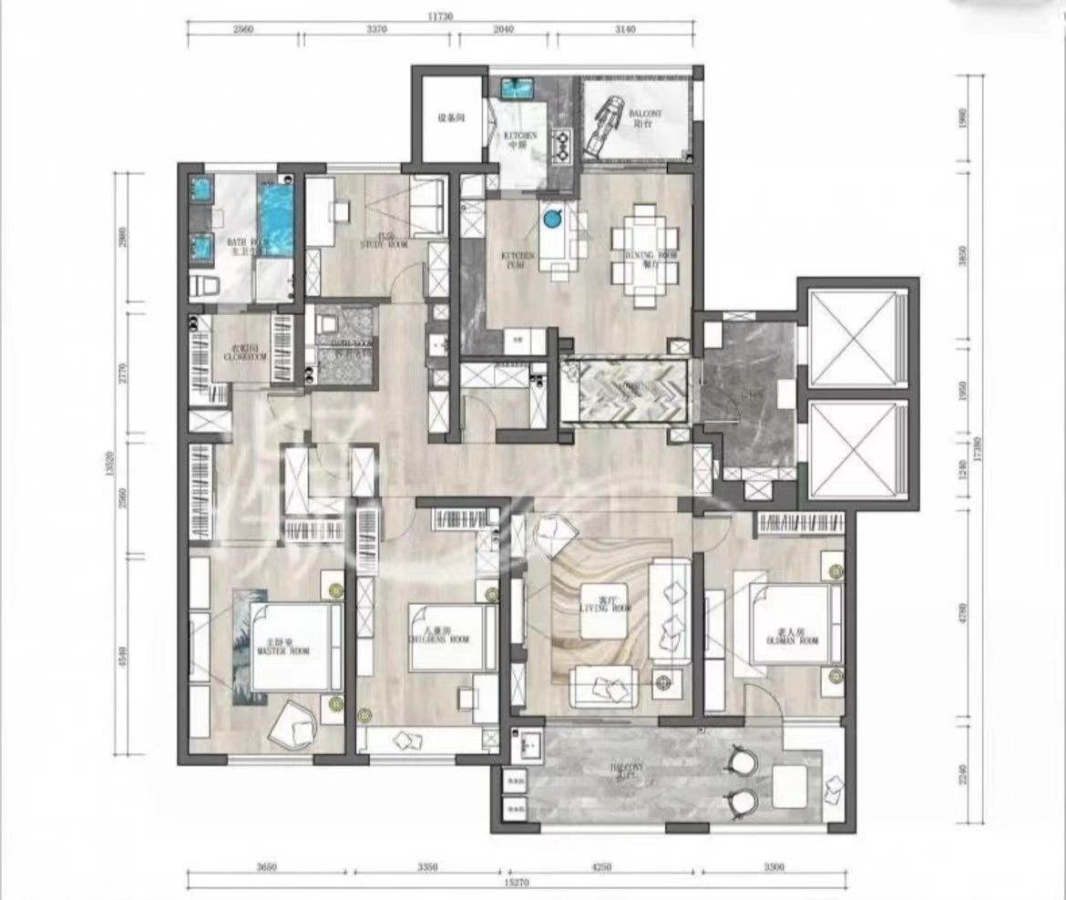 另外這個帶書房和陽臺的房間為老人房,無論是裝飾還是收納上都非常簡潔,令空間更加顯寬敞,不會給老人的行動造成阻礙,復古的地板和柜體,契合房間主人的喜好。