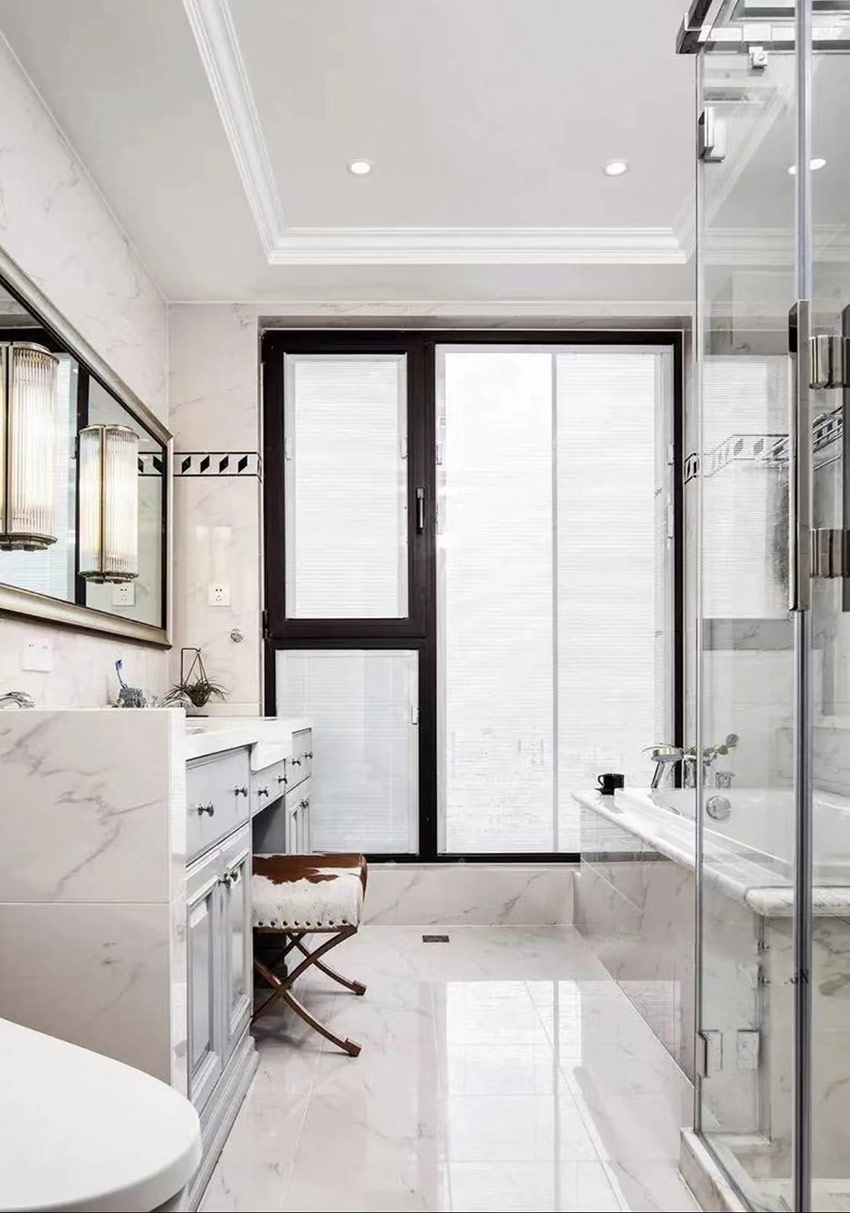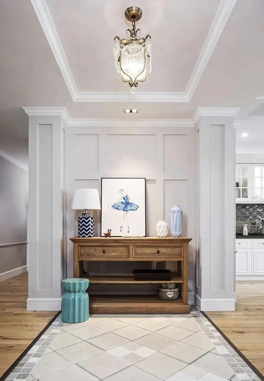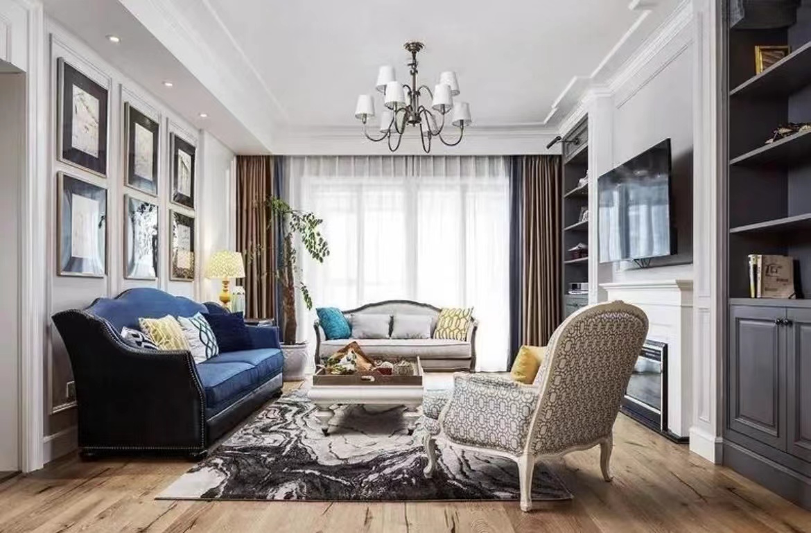 設(shè)計師為了像經(jīng)典美式致敬,在客廳的位置設(shè)計了一個小巧的壁爐,作為電視背景墻的一部分,營造一種復古原始的味道。