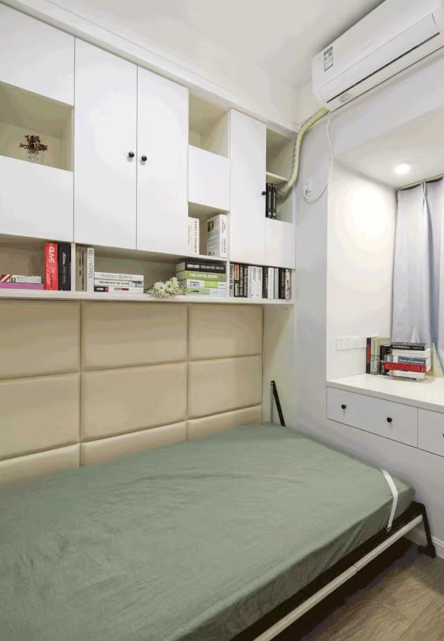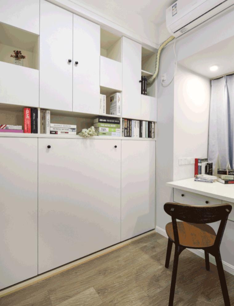 今天分享的是一套建筑面積95平米的北歐風剛需小三房案例,房子以簡潔舒適的硬裝為基礎(chǔ),在其上加入一些北歐風的軟裝和裝飾元素,來提升整個家的格調(diào)感和文藝范,有限的空間也做了不少的收納設(shè)計,不造成空間的浪費。 入戶沒有玄關(guān)走廊的戶型,設(shè)計師把廚房的門和墻體改成了玻璃門搭配矮柜的款式,也讓玄關(guān)多出了一些儲物空間。 再加上入戶門另一側(cè)的鞋柜、餐邊柜設(shè)計,就不擔心鞋子放不下了。深木色的餐桌椅搭配灰色調(diào)的墻面,顯得簡單而又有格調(diào)。 客廳和餐廳之間沒有做隔斷,墻面也是刷成了相同的顏色,客廳沙發(fā)背景墻處點綴了幾幅裝飾畫。沙發(fā)上方做部分的吊頂,用于隱藏管道、機體。 客廳的電視背景墻是做了文化磚的設(shè)計,側(cè)方留空部分刷漆,顯得更有設(shè)計感。電視柜延伸到了墻面,獨特的樹枝造型也給客廳增添了一些趣味性。 廚房內(nèi)部做了U字形的櫥柜布局方案,差異色的墻磚給廚房增添了一些設(shè)計感,白色的櫥柜又能保證廚房的明亮度,玻璃門和墻體的設(shè)計非常實用。 通往臥室的走廊過道被設(shè)計師充分的利用了起來,在墻面做上嵌入式的儲物柜,還加上藏光的設(shè)計,晚上拿東西也方便一些。 臥室的床頭兩側(cè)做了到頂?shù)墓褡?,柜子的造型非常獨特,中間留出部分床頭柜的區(qū)域,方便日常使用,也顯得非常好看。 書房內(nèi)藏著一個床,平時利用靠窗的區(qū)域來工作、學習,有需要的時候把床給放下來,就不用擔心家里來客人也沒地方睡的問題。 衛(wèi)生間內(nèi)做了干濕分離的設(shè)計,地面點綴了部分的花磚,讓衛(wèi)生間看起來更時尚。淋浴區(qū)的轉(zhuǎn)角區(qū)域做上置物架,增強衛(wèi)生間的實用性。