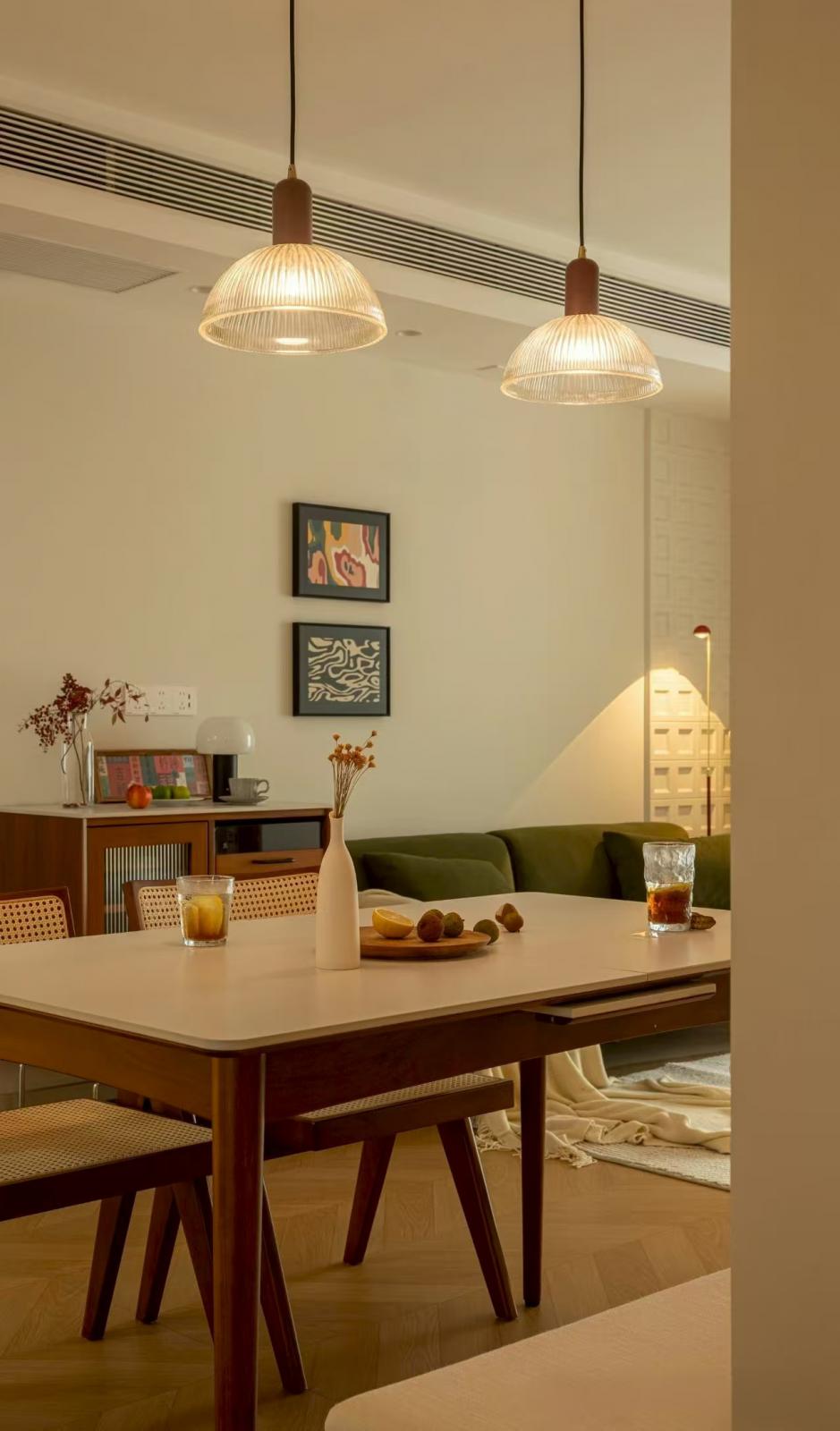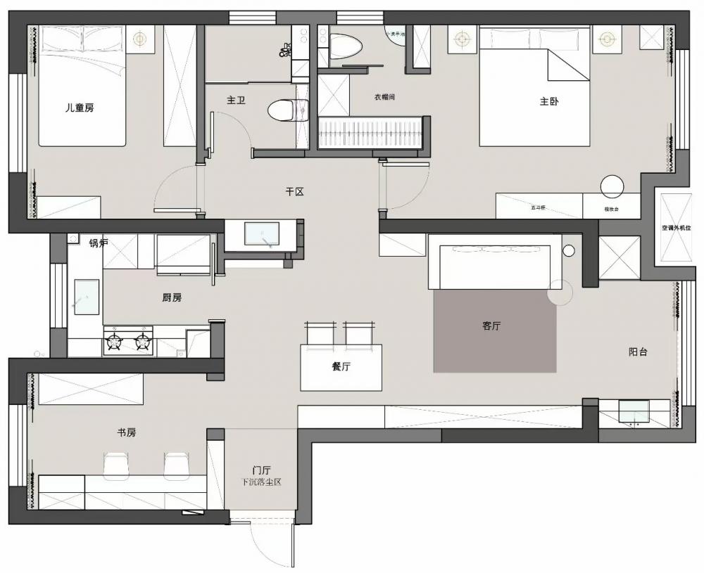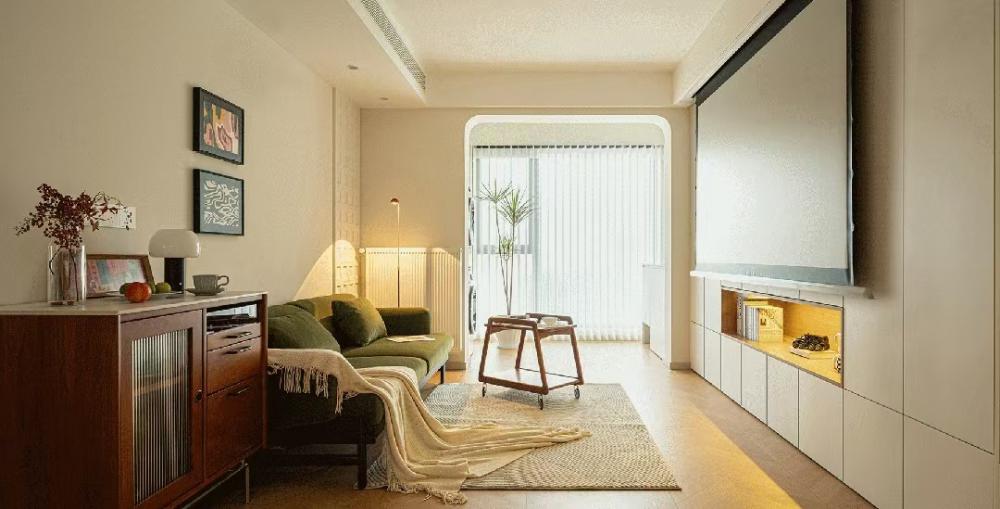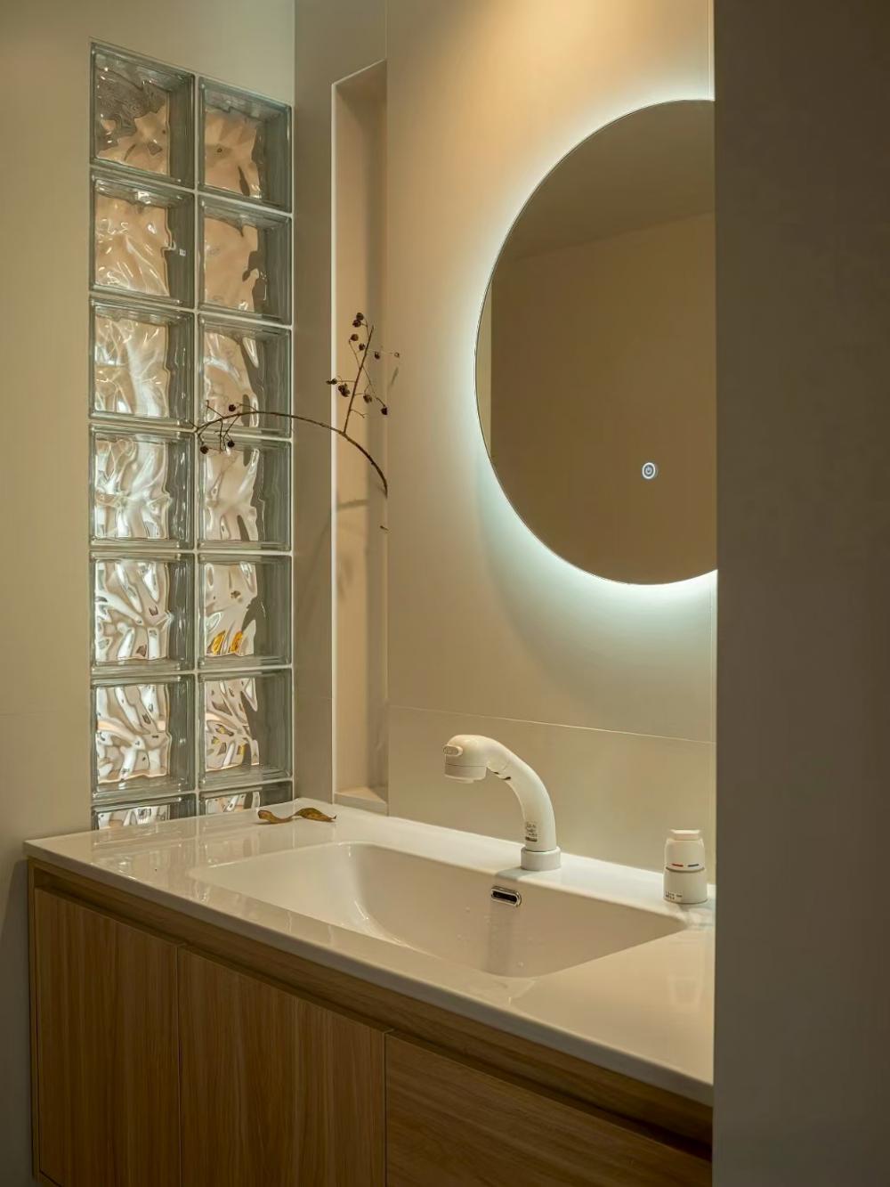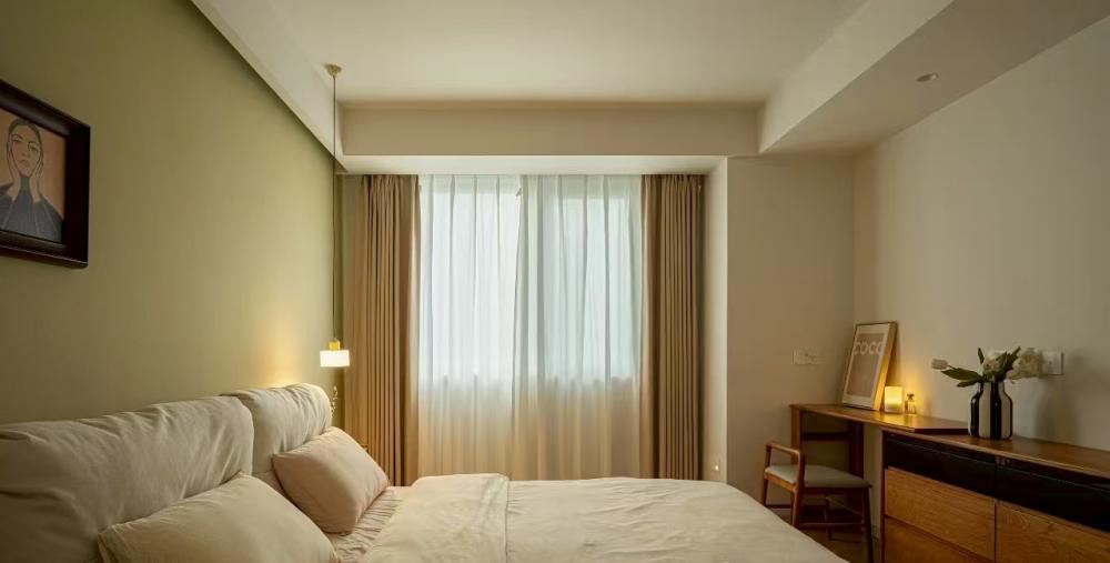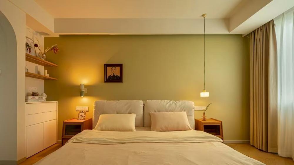 入戶設(shè)置一處端景,原戶型并無此面墻體,這樣的設(shè)計避免了入戶直視全屋,開門見景,又可以作為室內(nèi)外過渡緩沖的空間。 客廳以柔潤的香草色為基調(diào),淡淡的暖調(diào)中透著清爽,帶給人治愈與放松感,創(chuàng)造了一個令人愉悅的環(huán)境,一切看起來都很平衡。 沙發(fā)背景墻一側(cè)加入方格造型的石膏肌理板,塑造了墻面的立體感,細膩的質(zhì)感也讓空間更顯高級。 由整面的封閉式柜體打造出電視背景墻,視覺上更加“整齊劃一”,中間鏤空一處作為展示性收納,滿足多種收納需求,內(nèi)置燈帶,增添了空間的層次感,給人一種靈活多變的空間效果。 門廳一側(cè)的墻面安裝了胡桃木色的琴鍵衣帽鉤,提升立面空間的收納利用,進門之后掛包包、鑰匙之類的很方便,既美觀又實用。 穿過門廳來到餐廳,干凈清爽的色調(diào)給視覺感官帶來順滑的輕柔感,讓安謐舒適的氛圍縈繞于整屋之中。 餐桌+餐椅+卡座的組合方式,將美感與實用完美結(jié)合;胡桃木、巖板、藤編的材質(zhì)相互中和,簡約中透露出復(fù)古,清新又沉穩(wěn)的配色為空間注入融融暖意。 由電視柜延伸定制卡座,讓空間更加連貫統(tǒng)一,下方的地柜增添了餐廳的收納,舒適與實用相結(jié)合。 U型廚房的設(shè)計,將部分的廚房家電嵌入至櫥柜中,保障空間使用的流暢性與整潔。白色櫥柜與黑色臺面形成強烈對比,使空間看起來更有層次和深度,營造出簡潔、時尚的廚房環(huán)境。 半開放式的書房,定制一款長書桌,原木的色調(diào)為室內(nèi)空間增添一份自然、溫馨的氣息;搭配一把棕色的真皮辦公椅,為居家辦公和休閑營造出放松又愜意的棲息地。 半開放式的書房,定制一款長書桌,原木的色調(diào)為室內(nèi)空間增添一份自然、溫馨的氣息;搭配一把棕色的真皮辦公椅,為居家辦公和休閑營造出放松又愜意的棲息地。 通過戶型改造,在公區(qū)的走廊處設(shè)置獨立洗手臺,從而提高家庭的使用效率。利用玻璃磚作為墻體隔斷,半透明的效果保證了私密,又不影響采光,避免了客餐廳直視的尷尬。 臥室,一種恬淡安寧的感覺鋪面而來,使人感到放松和舒適。穿過拱形門洞,即可進入步入式衣帽間和主衛(wèi),通過戶型改造讓空間的功能劃分更加合理和便捷。