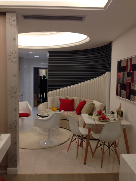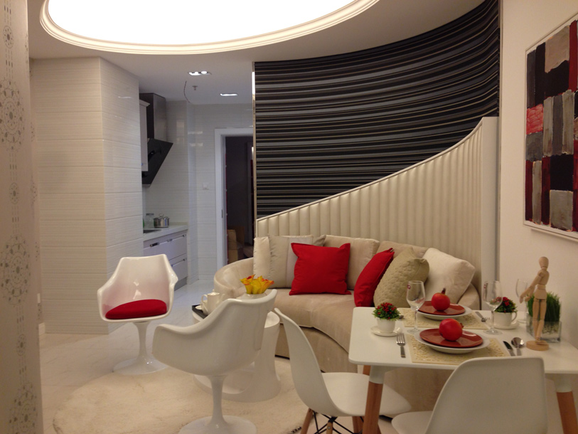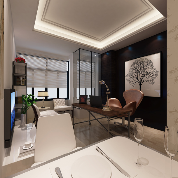 現(xiàn)代SOHO,建筑面積:30平公寓,本案例為30平方,為了滿足在家辦公人群的需要。做了一個弧形的進(jìn)門,讓人感覺很現(xiàn)代。書柜部分做了一個翻板床,既滿足了辦公需求有滿足了日常的居住。沙發(fā)是做的弧形的與弧形墻相對應(yīng)。頂于地面也是相呼應(yīng)。