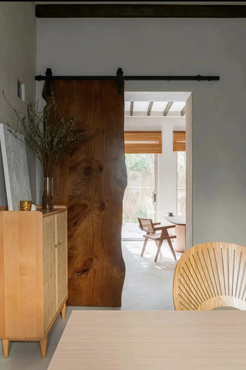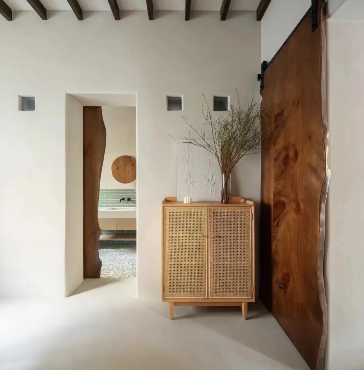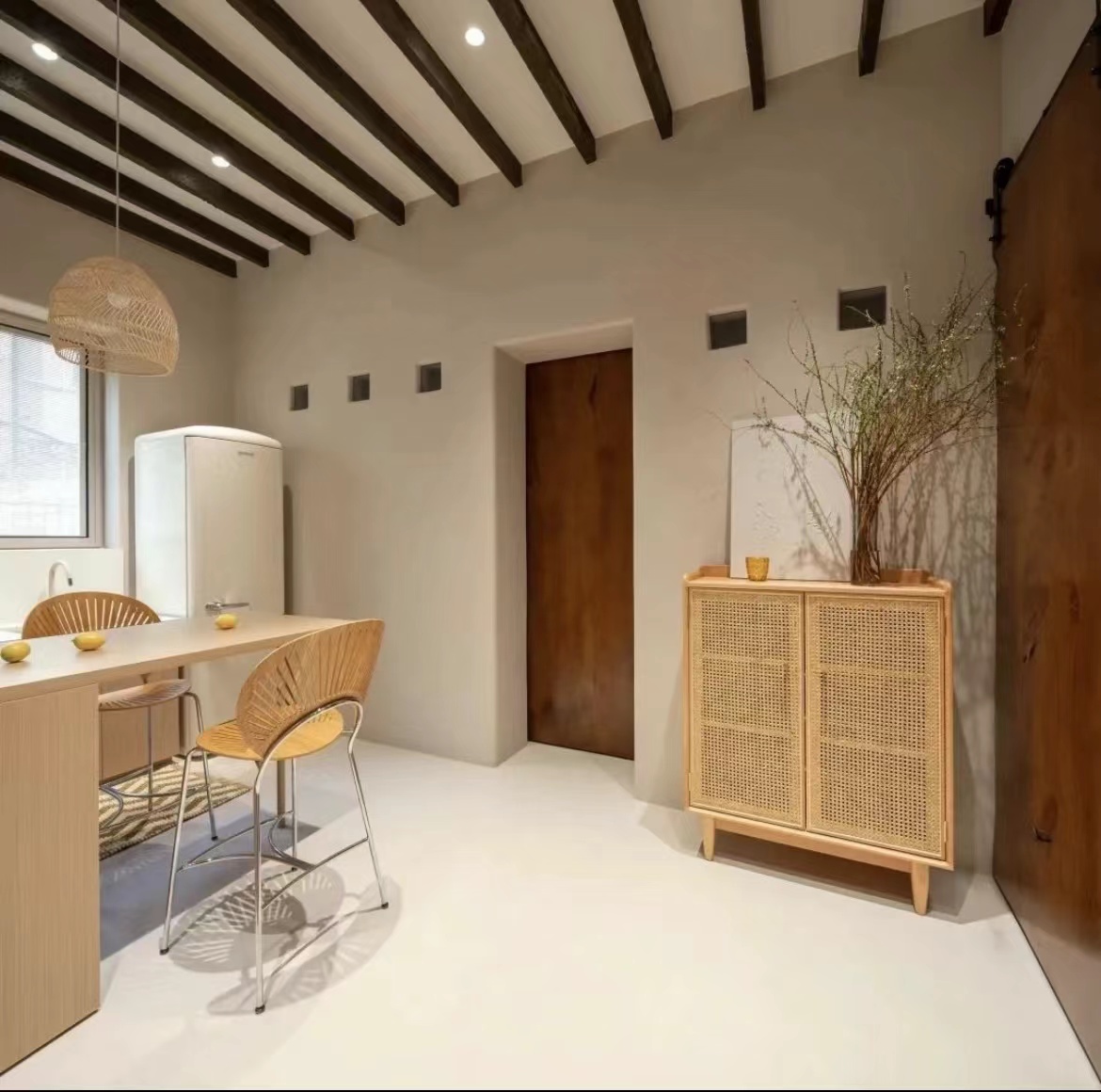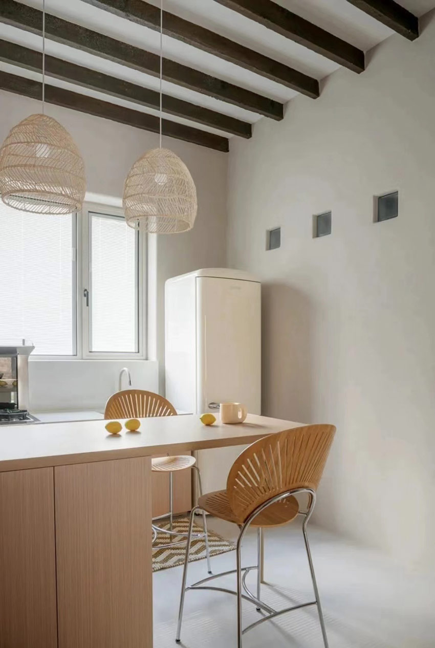 臥室和書房結(jié)合,用一道麻質(zhì)的窗簾作為隔斷,可開可合。