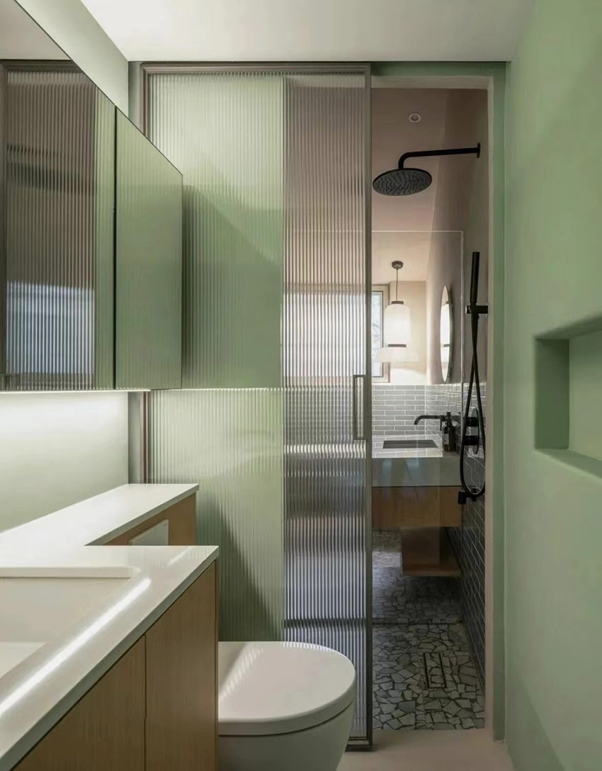 衛(wèi)生間利用一面墻做一些收納,從主衛(wèi)淋浴后可以直接回到自己的房間或公共區(qū)域,非常方便。