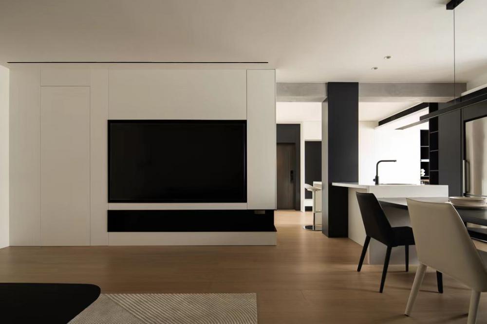 黑色,雖然是最經(jīng)典的顏色,但大面積的用于家裝則會(huì)給人壓抑感,這不僅是無(wú)數(shù)業(yè)主的頭疼問(wèn)題,也是設(shè)計(jì)師面臨的一大難題。 隨著技術(shù)創(chuàng)新發(fā)展,發(fā)現(xiàn)黑色系并不可怕,只要合理的布局巧妙搭配,同樣可以舒適大方,也不會(huì)影響光線和給人居家沉悶的感覺。 本期這套120㎡的簡(jiǎn)約風(fēng)裝修,在老房中裝修中脫穎而出,將黑色作為了整屋的搭配色,隨處可見的黑,給人炫酷又靜謐的感覺,自由卻也能體現(xiàn)出空間和諧感。 戶型分析: 入戶即是廚房空間,不僅采光不夠,使用空間也不大; 餐廳與廚房動(dòng)線不順暢,日常傳菜較麻煩; 入戶沒有鞋帽間,進(jìn)出不便,容易造成門口雜亂不堪的現(xiàn)象; 雙衛(wèi)生間尺寸都受限,單獨(dú)使用很不方便; 主臥儲(chǔ)物不足,一排柜體不能滿足臥室內(nèi)收納問(wèn)題。 方案亮點(diǎn): 拆除餐廳、廚房的隔墻,打造一個(gè)開闊的餐廚一體式空間; 將原兩個(gè)衛(wèi)生間合二為一,規(guī)劃出集泡澡、淋浴、馬桶和臺(tái)盆四件套的空間; 南陽(yáng)臺(tái)納入主臥,同時(shí)利用墻體拐角做衣帽間,提高臥室舒適度。