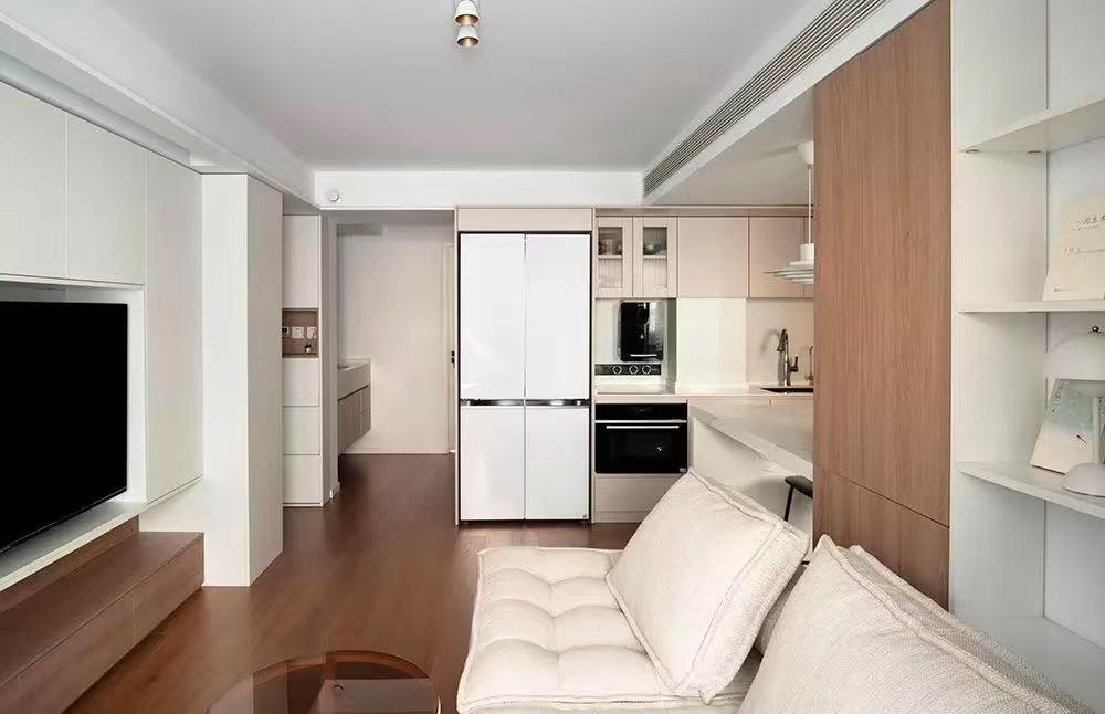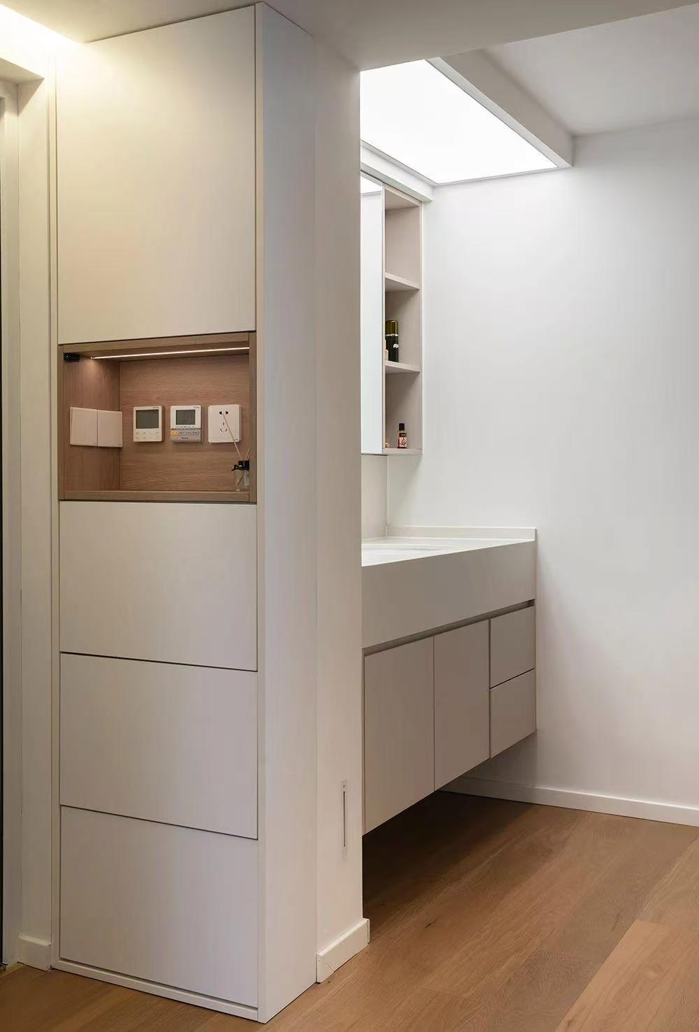 本期分享的這套51㎡的小家?guī)缀跫R了所有老破小的缺陷:沒玄關(guān)、廚房窄小、衛(wèi)生間既小又暗、儲物空間不夠... 雖然是有很多的問題存在,但戶型方正,只要稍加設(shè)計,還是有挽救的機會的。所以業(yè)主在與設(shè)計師溝通后,希望在并不大動的前提下實現(xiàn)逆襲。 設(shè)計亮點: 入戶增加兩側(cè)柜體,打造進門玄關(guān)區(qū); 衛(wèi)生間干濕分離,并且增加過道儲物柜進行收納; 廚房打開做成開放形式,保證小空間的通透感。