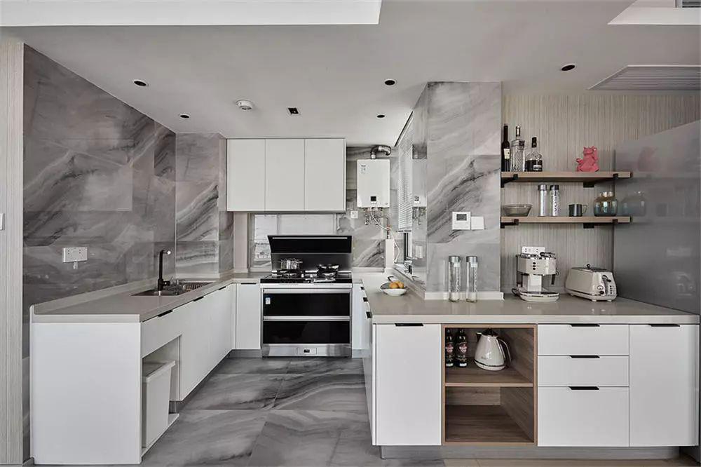 今天分享的是一套建筑面積84平米的現(xiàn)代風(fēng)小戶型二居室案例,設(shè)計師以原木風(fēng)的家具、淺色調(diào)的軟裝來打造這樣一個輕松、舒適的小窩,客餐廳是橫廳的格局,做了開放式的布局,顯得簡潔而又大方。 走過入戶玄關(guān)之后就到了客餐廳空間,木質(zhì)與白色結(jié)合的收納款電視背景墻,底部還加上了大理石元素,顯得更加精致、大氣。 靠窗的地方做了一整排的飄窗柜,也能作為客廳沙發(fā)的補充??蛷d和餐廳是一個橫廳的格局,兩者之間不做隔斷,顯得格外的寬敞。 餐廳和沙發(fā)之間留出一個小走道的空間,坐在飄窗上還能看看書、曬曬太陽,享受一個愜意的午后、周末時光。 餐廳的兩側(cè)都做了收納的設(shè)計,一側(cè)是到頂?shù)牟瓦吂?,另一?cè)是廚房櫥柜的延伸,冰箱也擺放在柜子的邊上,顯得更不會那么突兀。 廚房做了開放式的布局,通鋪灰色系的大理石瓷磚,搭配白色系的櫥柜,大理石瓷磚的獨特紋理非常帥氣,整個廚房顯得格外的寬敞、明亮。 臥室的床頭背景墻以灰黑色+兩側(cè)木飾面,木質(zhì)感的空間搭配側(cè)邊白色衣柜門,現(xiàn)代簡約的空間在木色與暖光的襯托下,帶來了溫馨的氛圍感。 由于屋主暫時沒有小孩,所以次臥是作為了書房來使用,靠墻做個雙人位的書桌,另一側(cè)擺放灰色的布藝沙發(fā),簡潔而又大方。 雙人位的書桌還連著到頂?shù)墓褡?,之后想要改成兒童房,也只需要把沙發(fā)替換成床就好了,收納和實用兼具。 衛(wèi)生間內(nèi)部空間不大,用浴簾和擋水條做了干濕分離,在淋浴區(qū)的轉(zhuǎn)角空間還做了隔板收納,方便擺放洗浴用品。