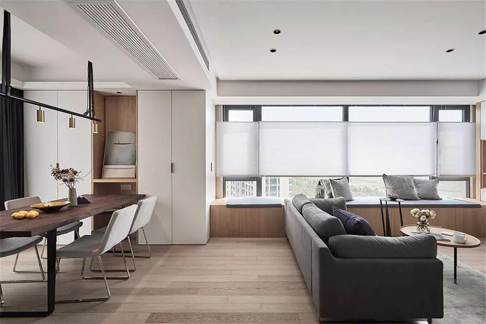 84平的小戶型二居室,客廳里有個長飄窗,輕松擴容