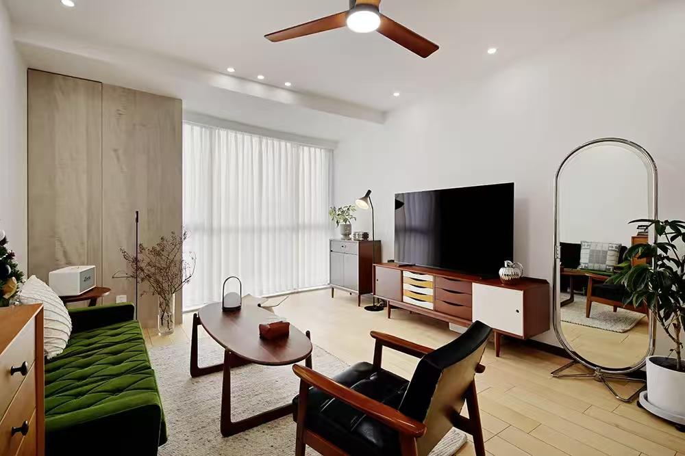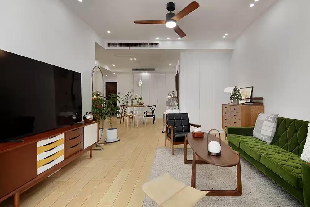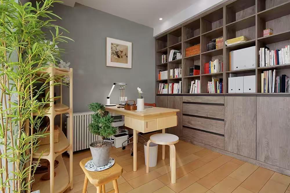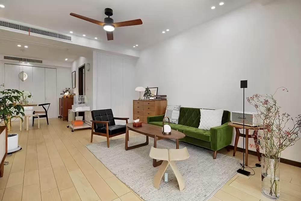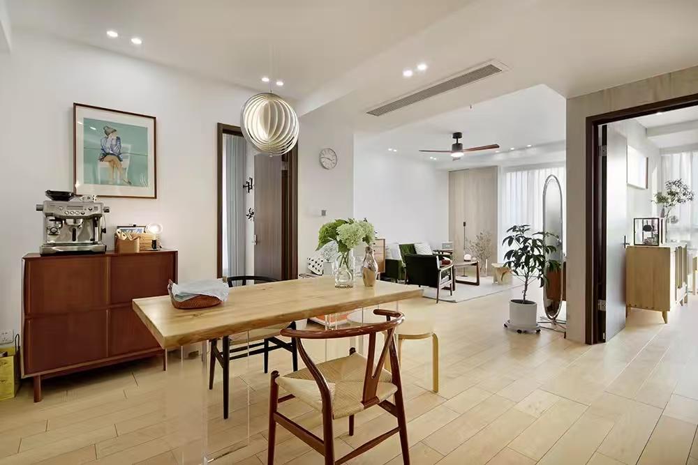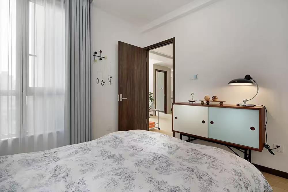 這是一套70㎡的兩居室,業(yè)主比較喜歡日式風(fēng)格,設(shè)計(jì)師通過柔和的色調(diào),簡約的線條打造了一個(gè)溫暖自然、氣質(zhì)沉靜的家,并利用復(fù)古文藝的木質(zhì)家具及各式裝飾物,混搭出一個(gè)閑適寫意、悠然自得,溫潤又克制的清新house。 這是一個(gè)集玄關(guān)、餐廳、客廳為一體的開放式設(shè)計(jì),動(dòng)線流暢,明亮潔凈,改造后,客餐廳聯(lián)動(dòng)增強(qiáng),通透的空間給人很好的視覺感受。 玄關(guān)處進(jìn)門左側(cè)定制的通頂收納柜,方便存放鞋子、雜物等,構(gòu)成強(qiáng)大的收納系統(tǒng)。右側(cè)是掛鉤+換鞋凳的組合,解決了日常掛衣(這里主要掛的是雨傘、刷子等小物品)、換鞋的難題 進(jìn)門后,右側(cè)則是半開放式廚房設(shè)計(jì),空間寬敞,采光通透明亮。 U型動(dòng)線布局優(yōu)化,更好的利用了空間,墻面設(shè)計(jì)有擱板、掛架輔助收納。小家電也有專門的位置擺放,解決了收納凌亂的問題。 半開放式廚房與餐廳緊鄰,打開移動(dòng)門,這就是一個(gè)開放式大空間,通透明亮,溫馨感蔓延。三聯(lián)動(dòng)玻璃移門使得進(jìn)出廚房空間變大,不用側(cè)身,端菜方便。在進(jìn)行爆炒時(shí)拉上門,就可隔絕油煙往外飄散。 客廳陽光充足,綠色沙發(fā)和黑色K-Chair舒適復(fù)古,鮮活的撞色靈感,透著一股慵懶時(shí)尚的風(fēng)情。 從另一個(gè)角度看客廳,視野可以直接延伸至餐廳,空間仿佛變大了。每把椅子的款式都不一樣,充滿設(shè)計(jì)感的家具讓這個(gè)大空間更具靈性。 臥室的設(shè)計(jì)以簡為美,拋去繁雜,是素淡典雅的模樣。簡潔的色彩和明了的動(dòng)線,給人安全舒適的感覺。 書房是原來的主臥,空間較大,但因?yàn)楣δ苄缘母淖儯砸獜氐赘母窬?,兼具工作間+化妝間,所以將原來的主臥改為書房?;疑c原木色的搭配,使整個(gè)空間更加雅致。 衛(wèi)生間使用了三分離的布局設(shè)計(jì),將馬桶、淋浴房、洗漱臺(tái)三個(gè)區(qū)域分離開來,這樣三個(gè)空間的使用互不影響。